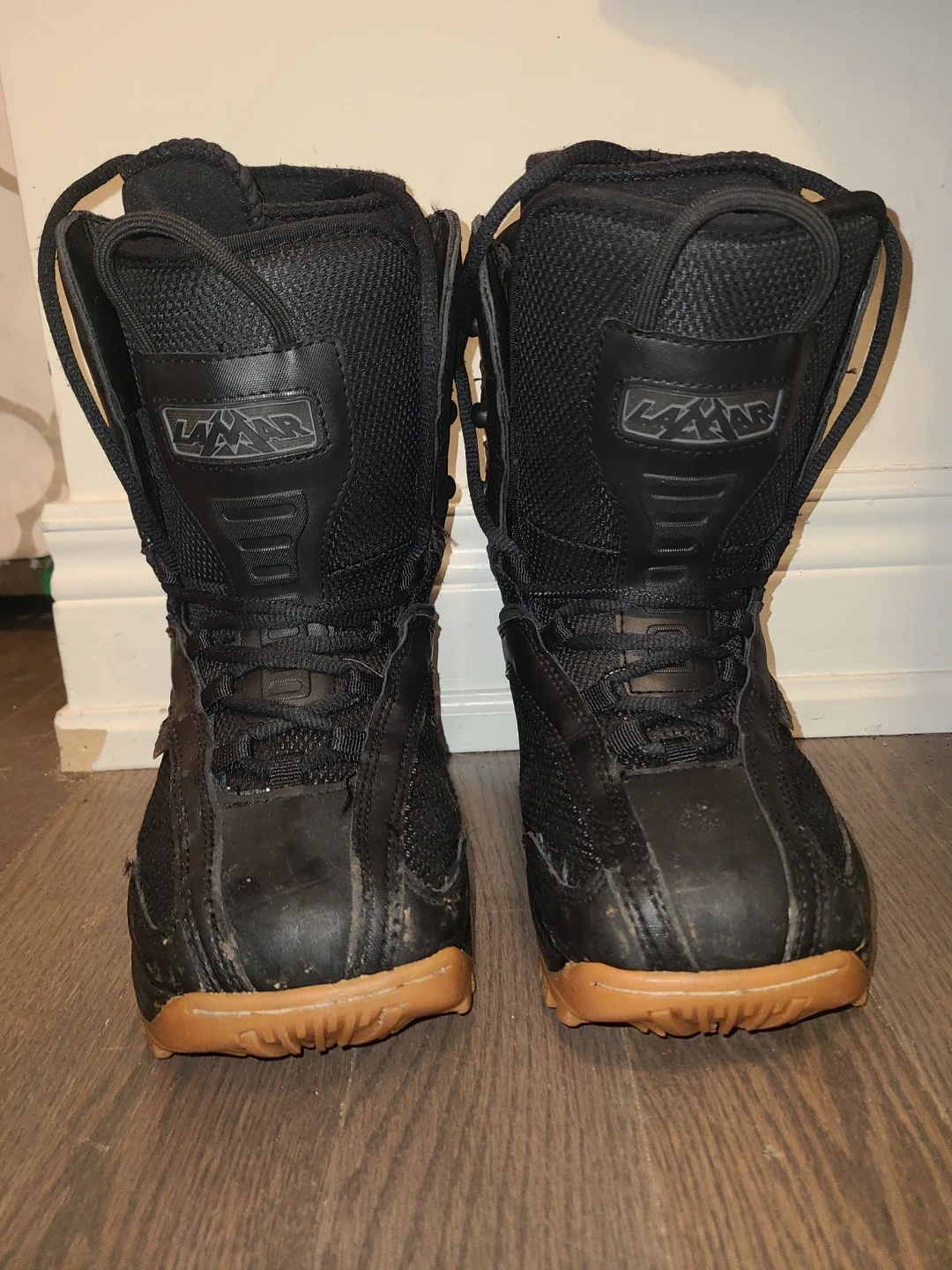 Selling a pair of Lamar snowboard boots. They're black and in used condition, as you can see in the photos. Great for hitting the slopes!