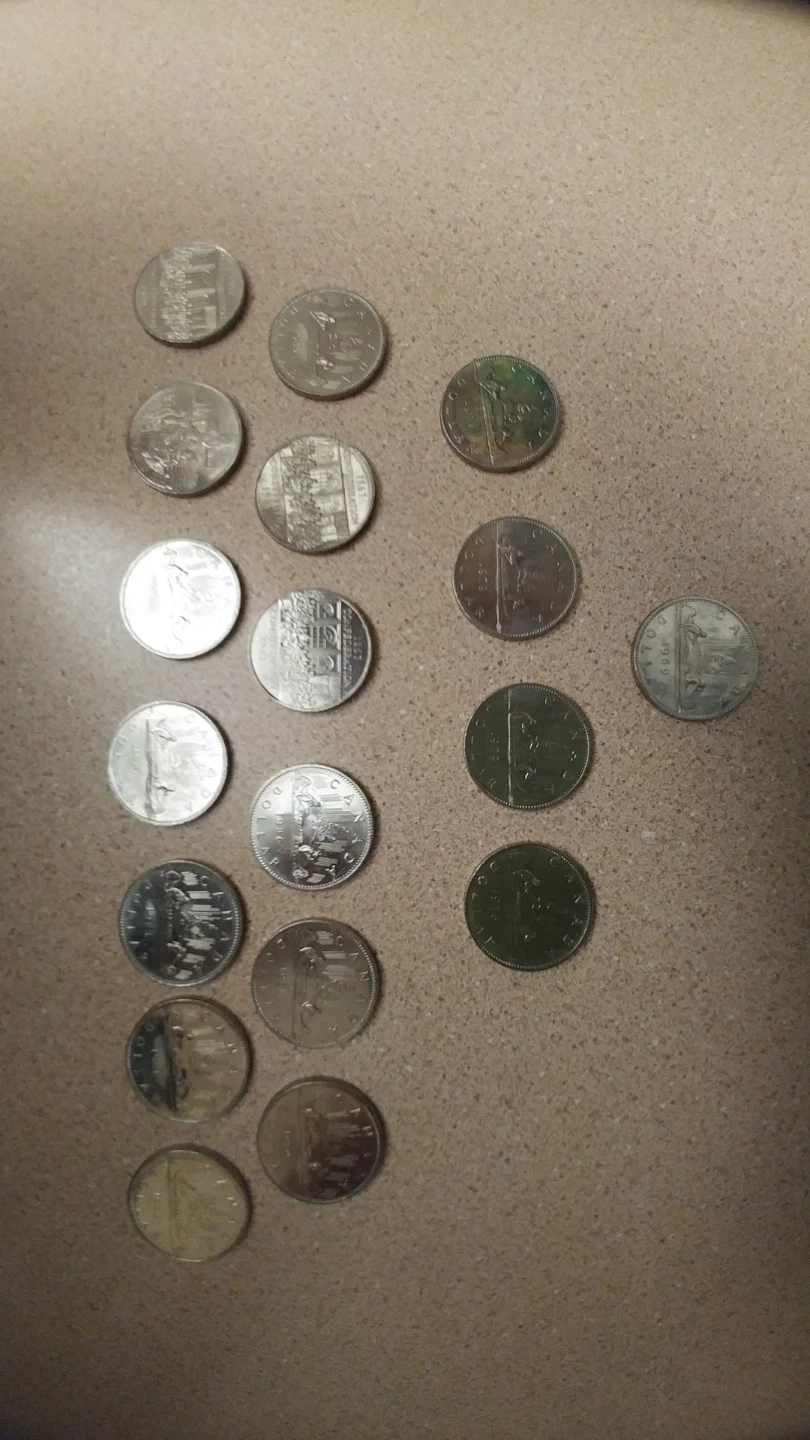 Selling a collection of assorted Canadian silver coins. There are coins from various years (1969-1986) and designs.