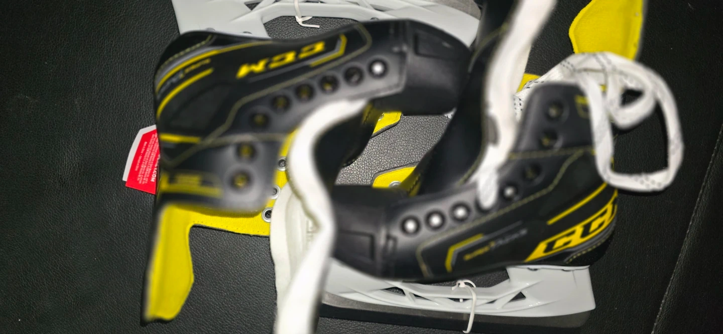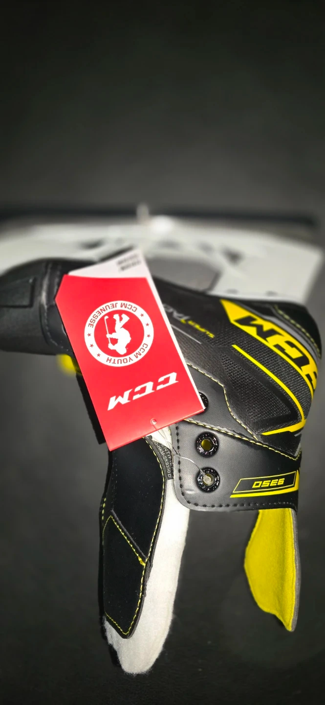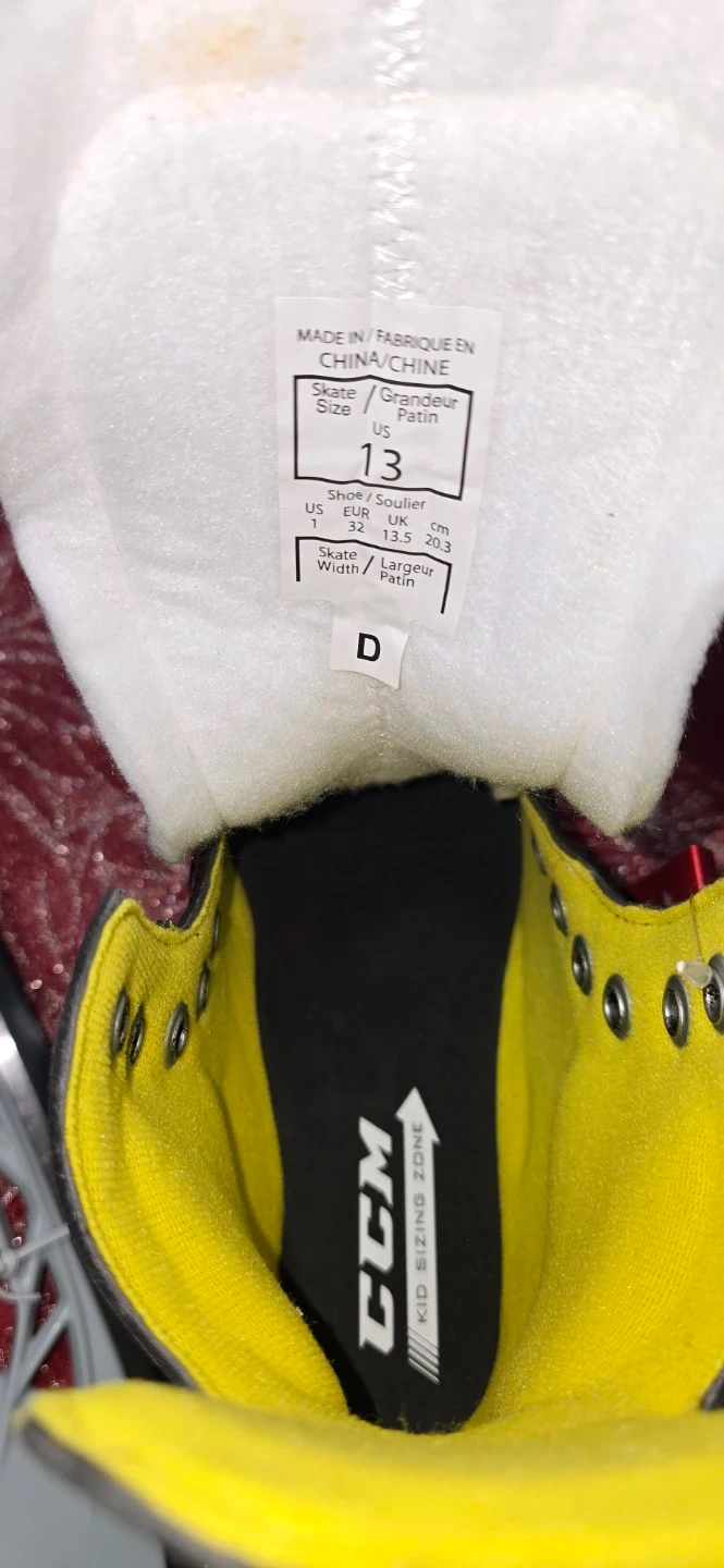 Selling a pair ofsize 13 CCM Youth Tacks 9350 ice skates. They are in new condition and ready for the rink never used ! The skates feature a black and yellow design, perfect for young hockey players. Check out the photos for a closer look!