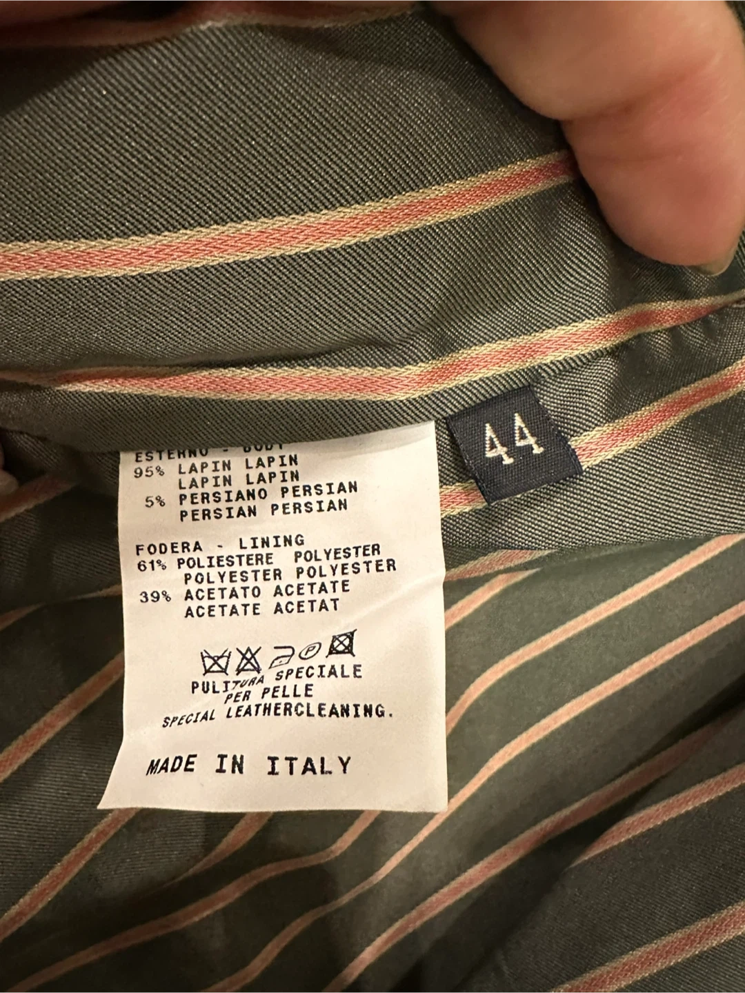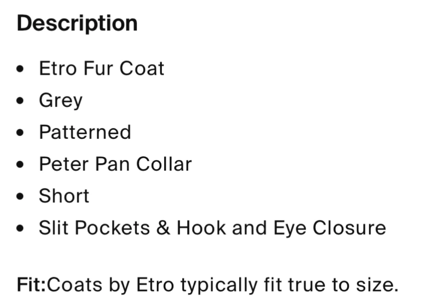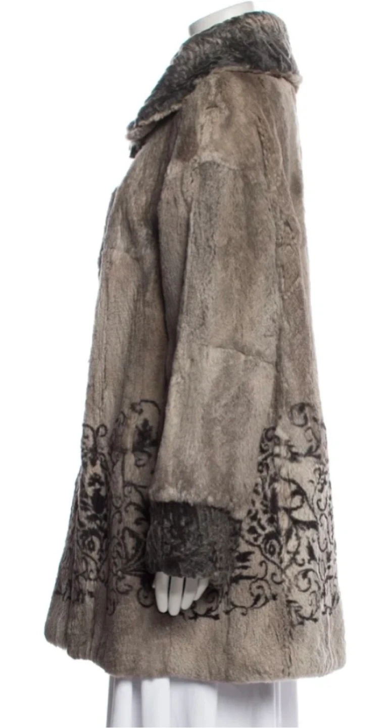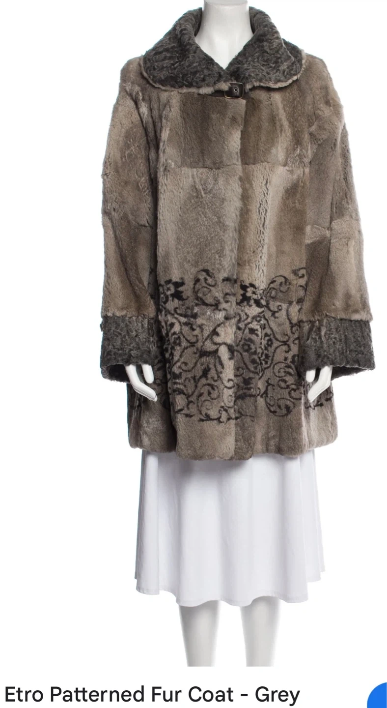Authentic❗️Etro Milano fur coat in size 44. The outer material is 95% lapin and 5% persian. The lining is 61% polyester and 39% acetate. It also comes with a garment bag!