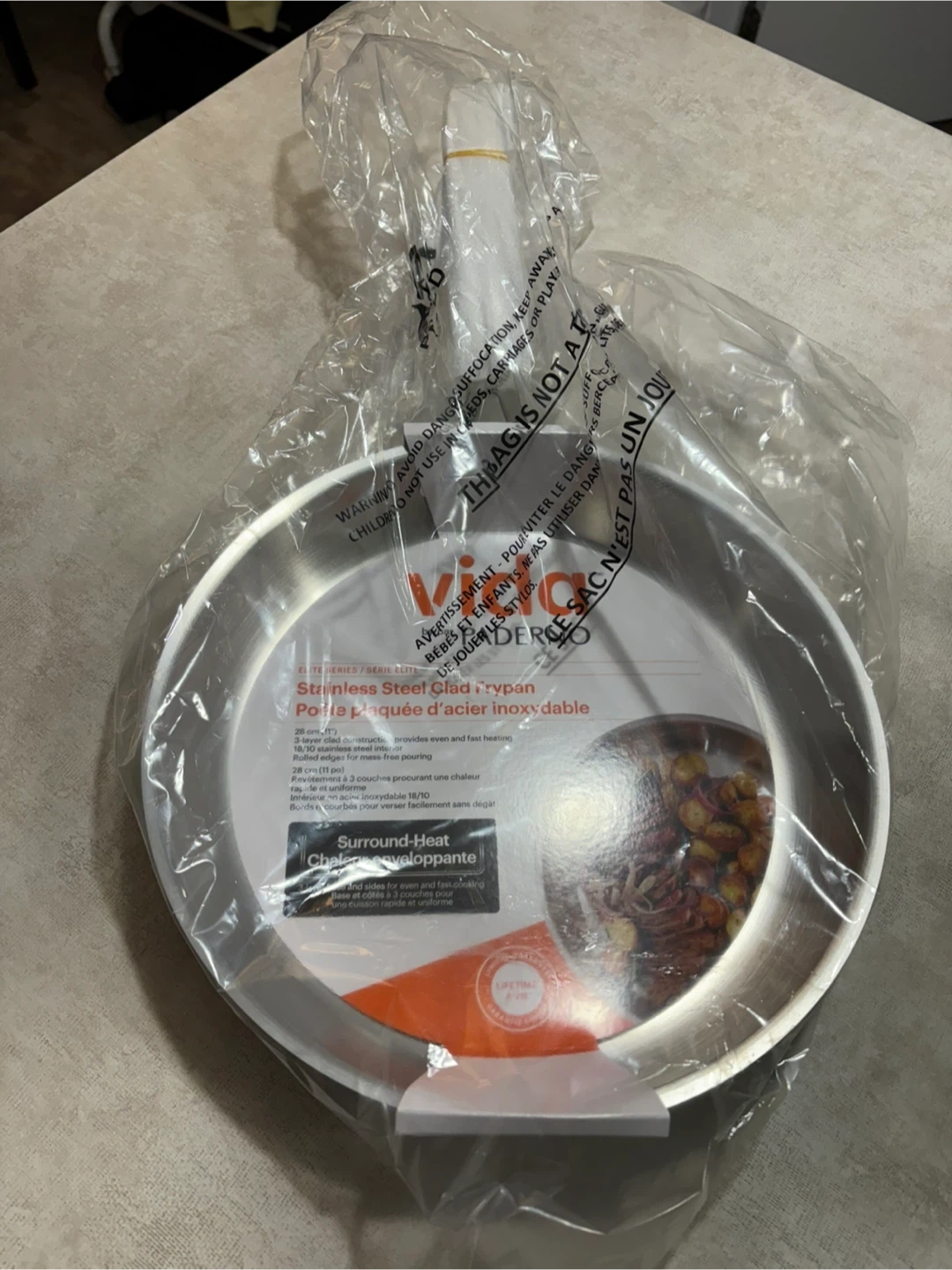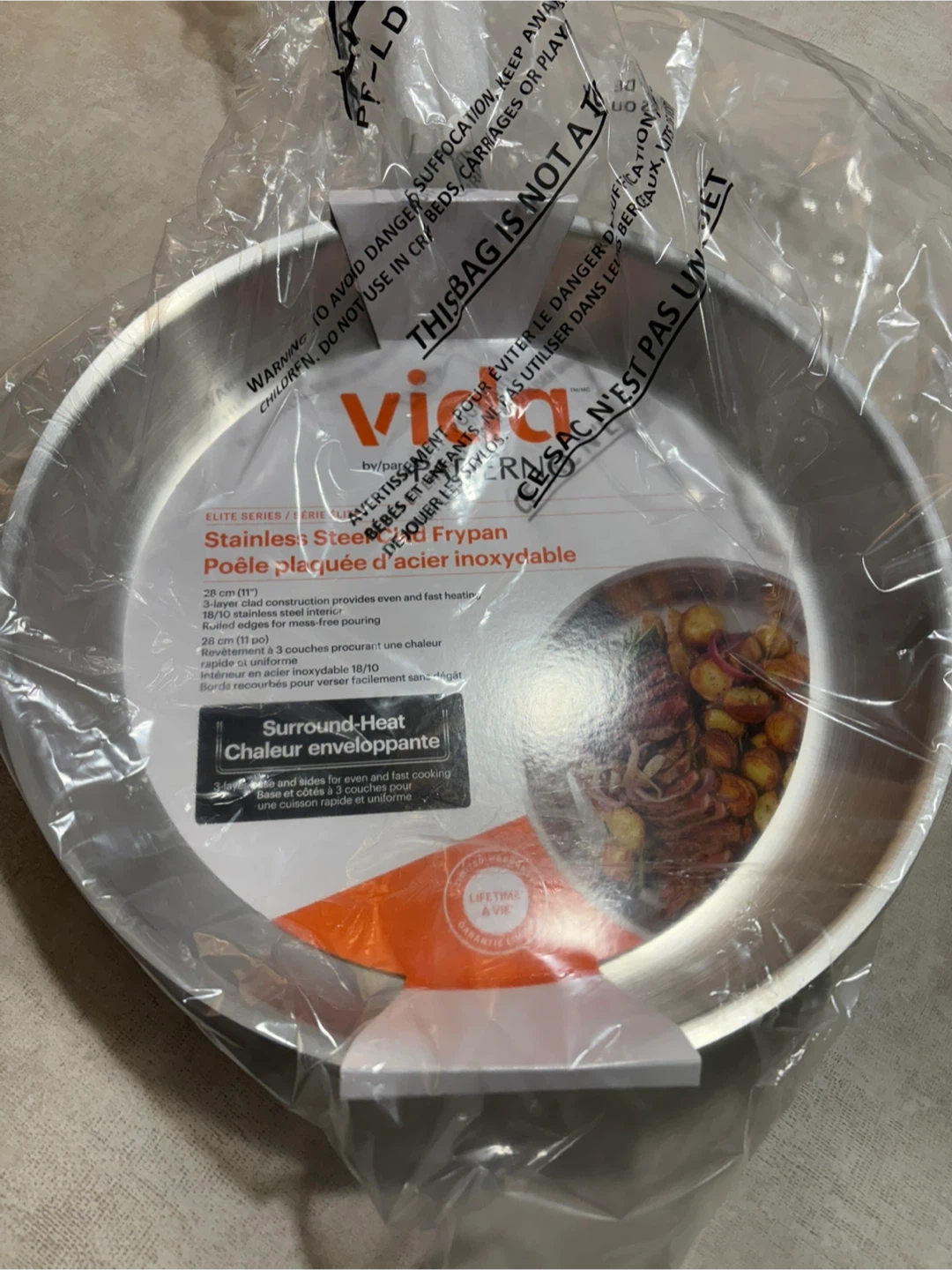Selling a brand new Vida by Paderno Elite Series 3-Layer Stainless Steel Frying Pan! It's oven safe and silver in colour.