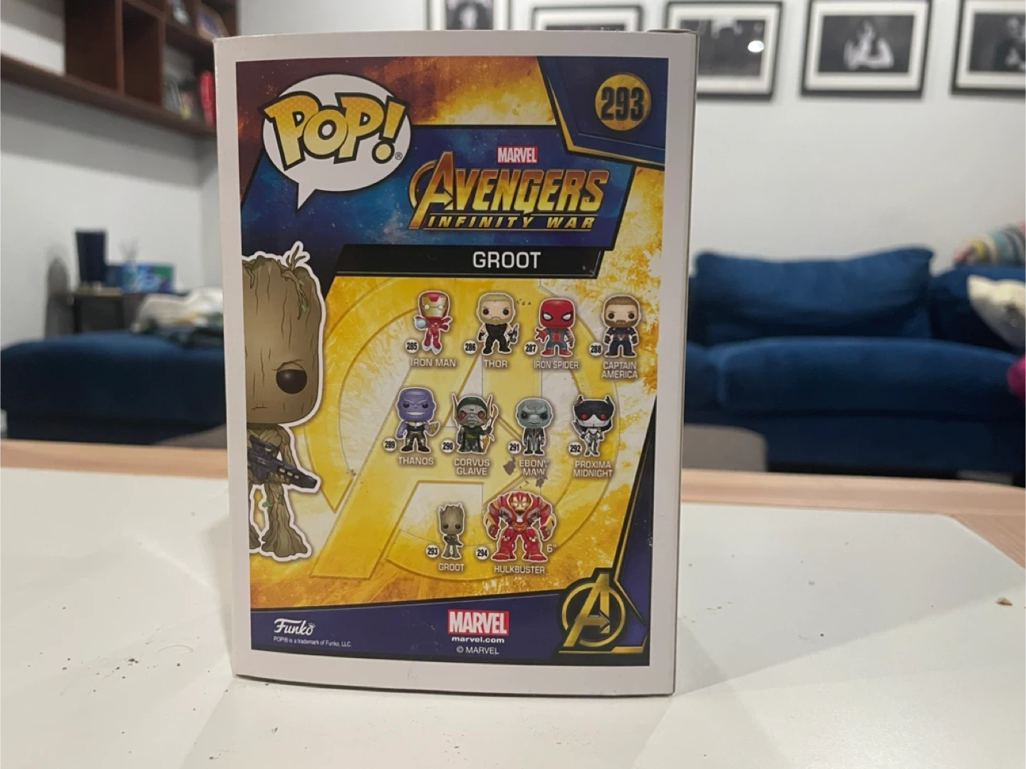 Selling a Funko POP! figure of Groot from Marvel's Avengers: Infinity War. This is figure #293 in the series. It's in great condition and comes in its original box!