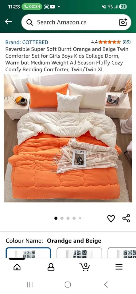 Brand New Reversible Super Soft Burnt Orange and Beige Twin Comforter Set for Girls Boys Kids College Dorm, Warm but Medium Weight All Season Fluffy Cozy Comfy Bedding Comforter, Twin/Twin XL.