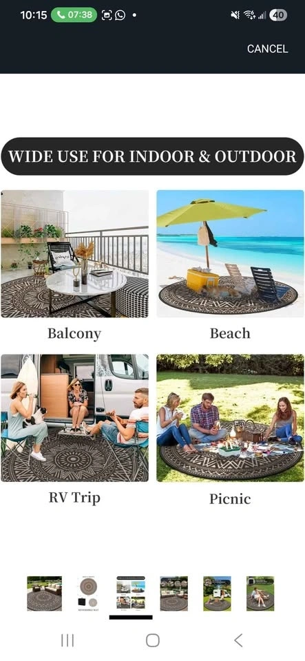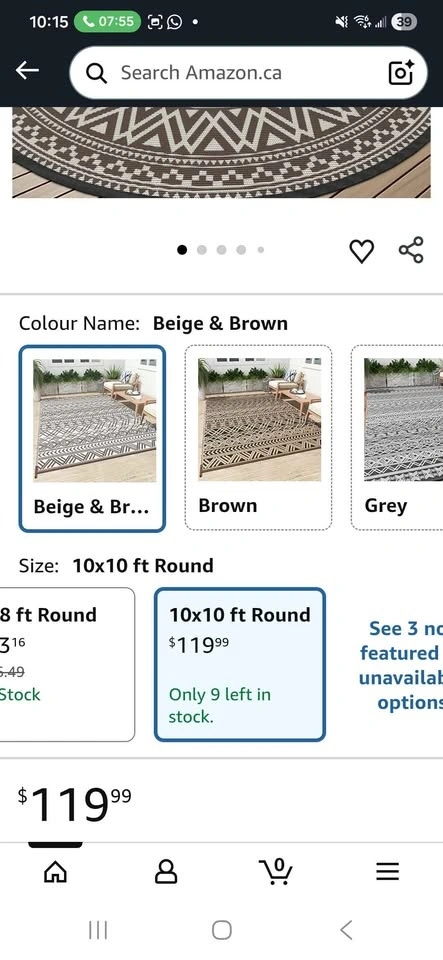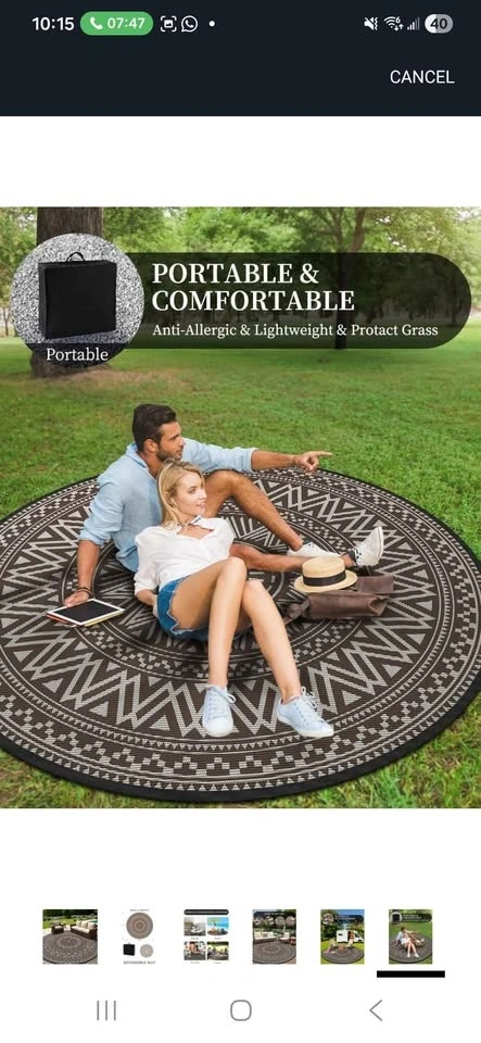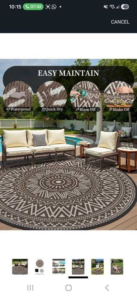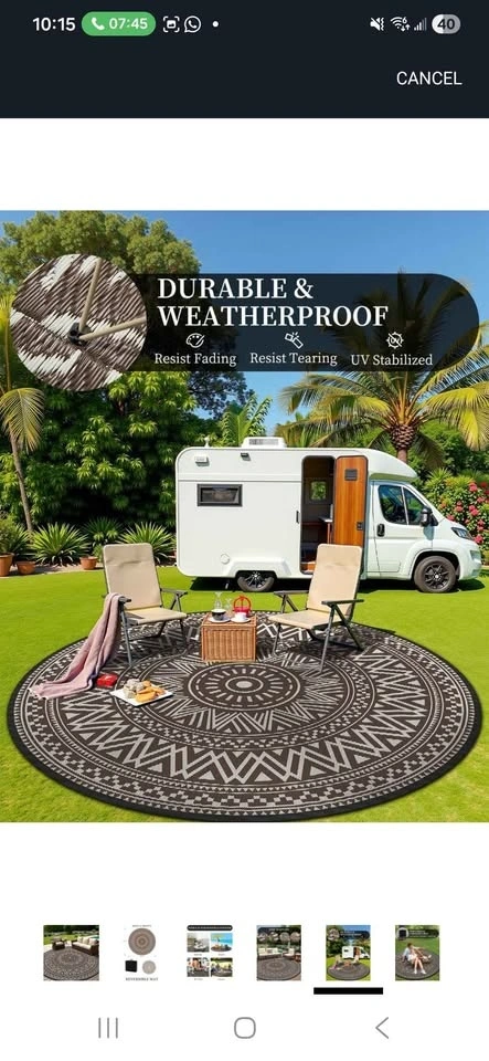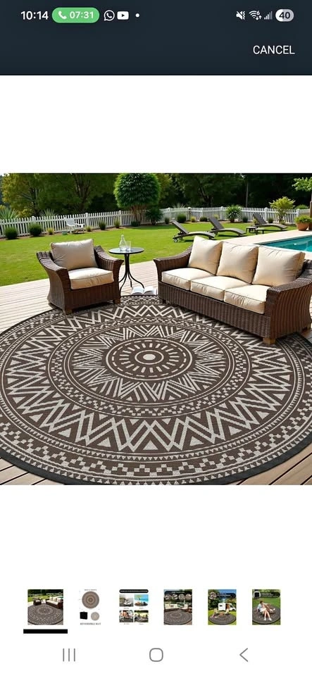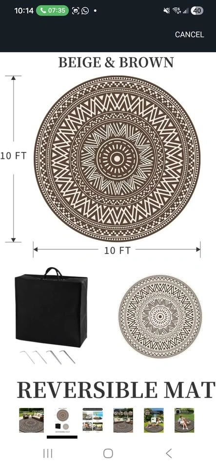 Brand New Round Outdoor Rug 10x10 ft Waterproof Outdoor Carpet-Patio RV Deck Camping Rug Portable Boho Rugs for Picnic Backyard Porch Balcony Beach Mat Beige & Brown