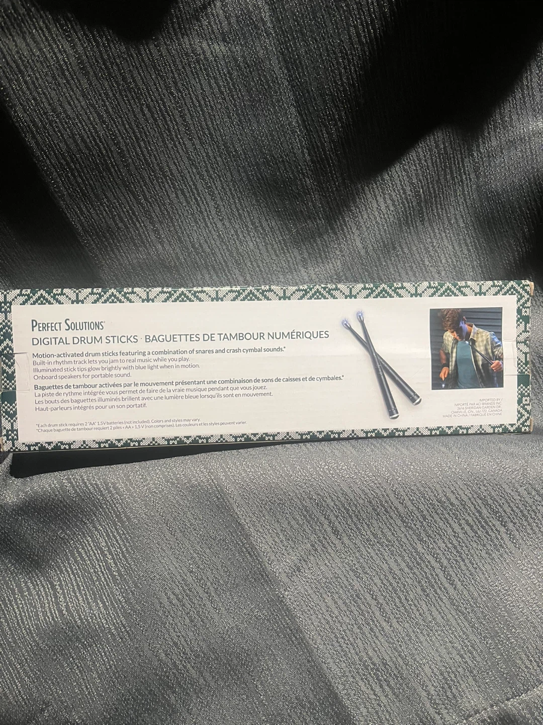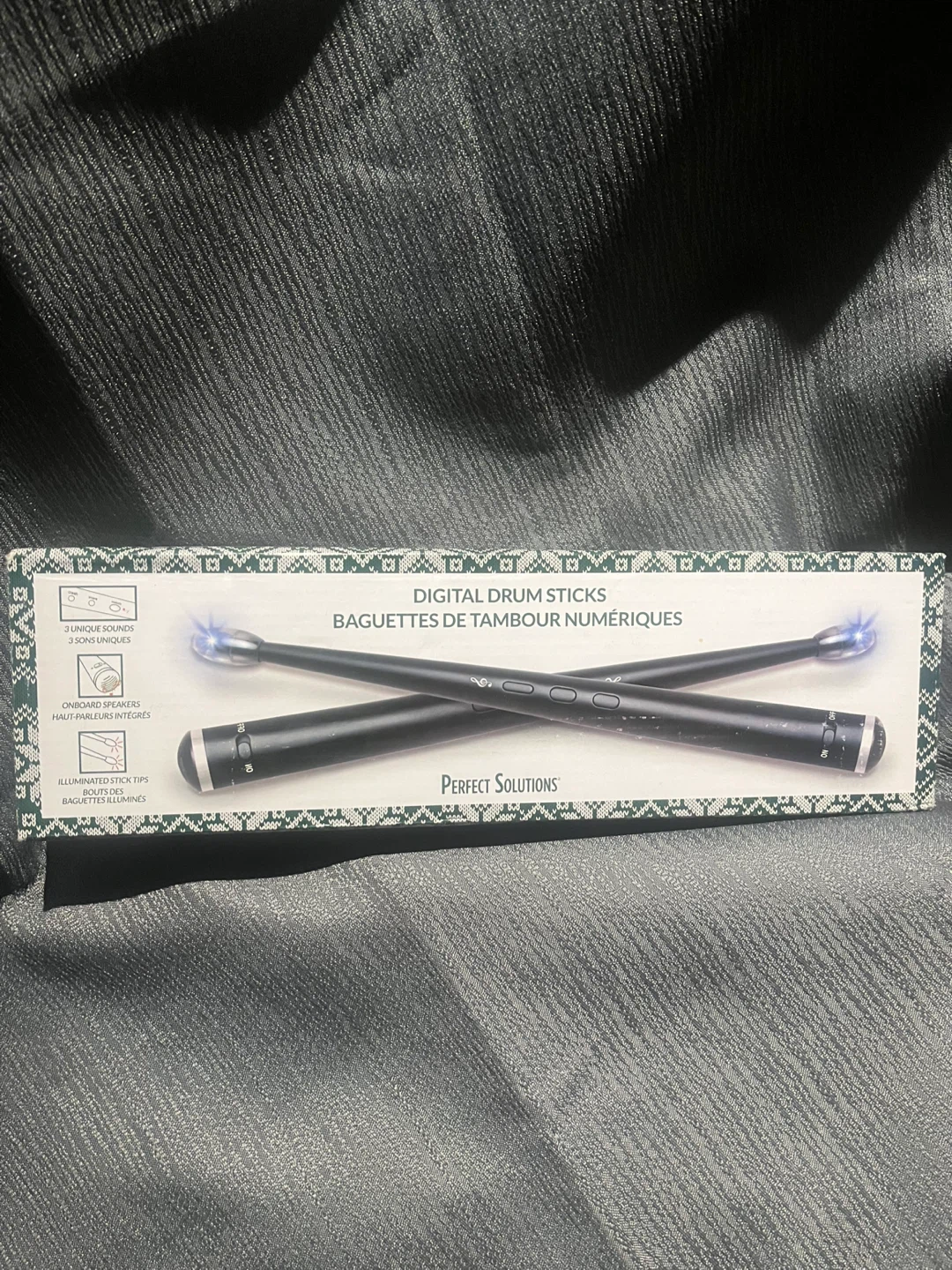 Selling a brand new set of Perfect Solutions Digital Drum Sticks! These motion-activated drum sticks feature a combination of snares and crash cymbal sounds. The illuminated stick tips glow brightly with blue light when in motion. Comes in the original box