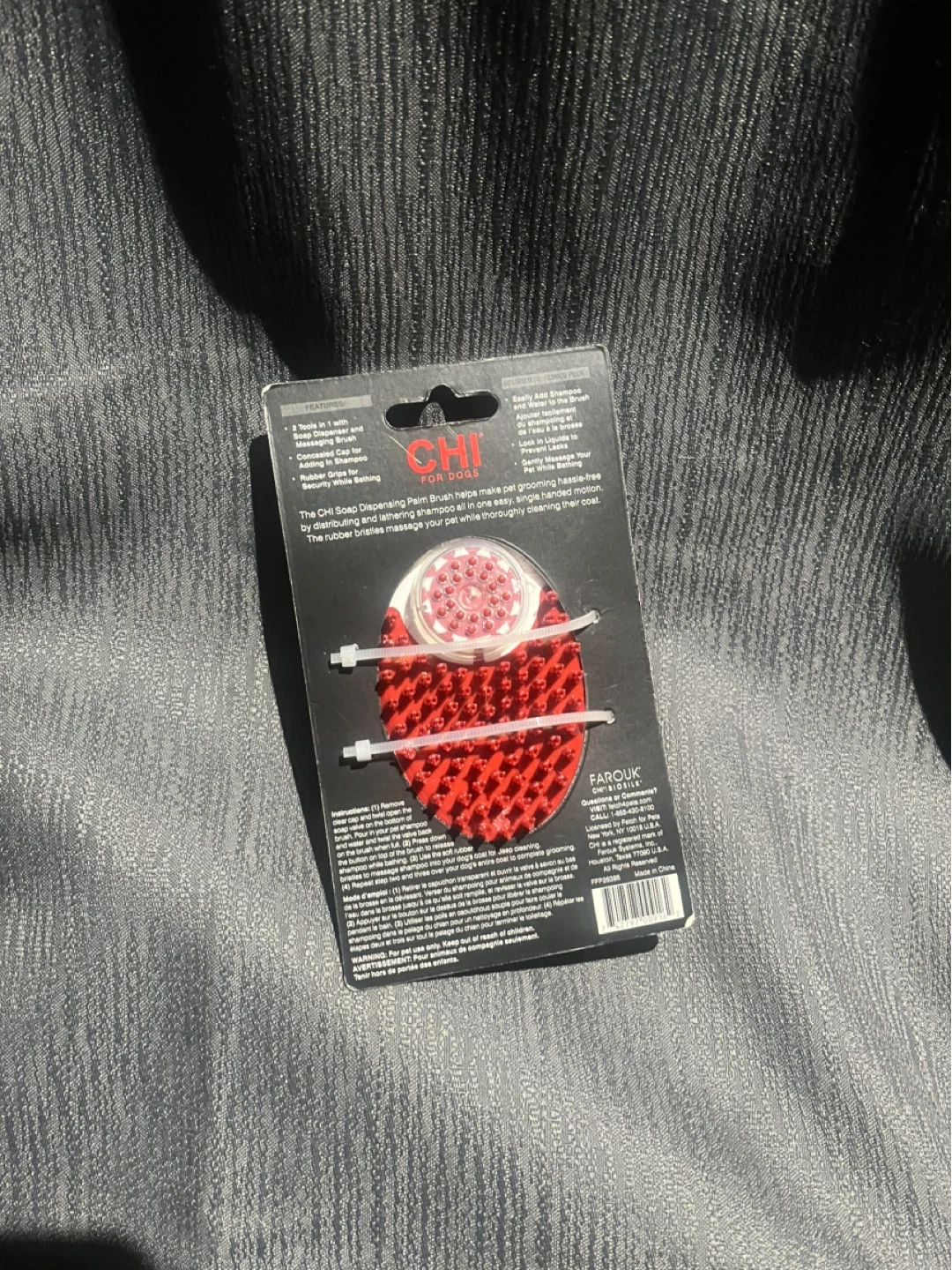I'm selling a brand new CHI Soap Dispensing Palm Brush, still in its original packaging! This handy brush dispenses soap while bathing, making it super convenient. The rubber bristles massage your pet while thoroughly cleaning their coat. It's a great tool for a spa-like experience at home!