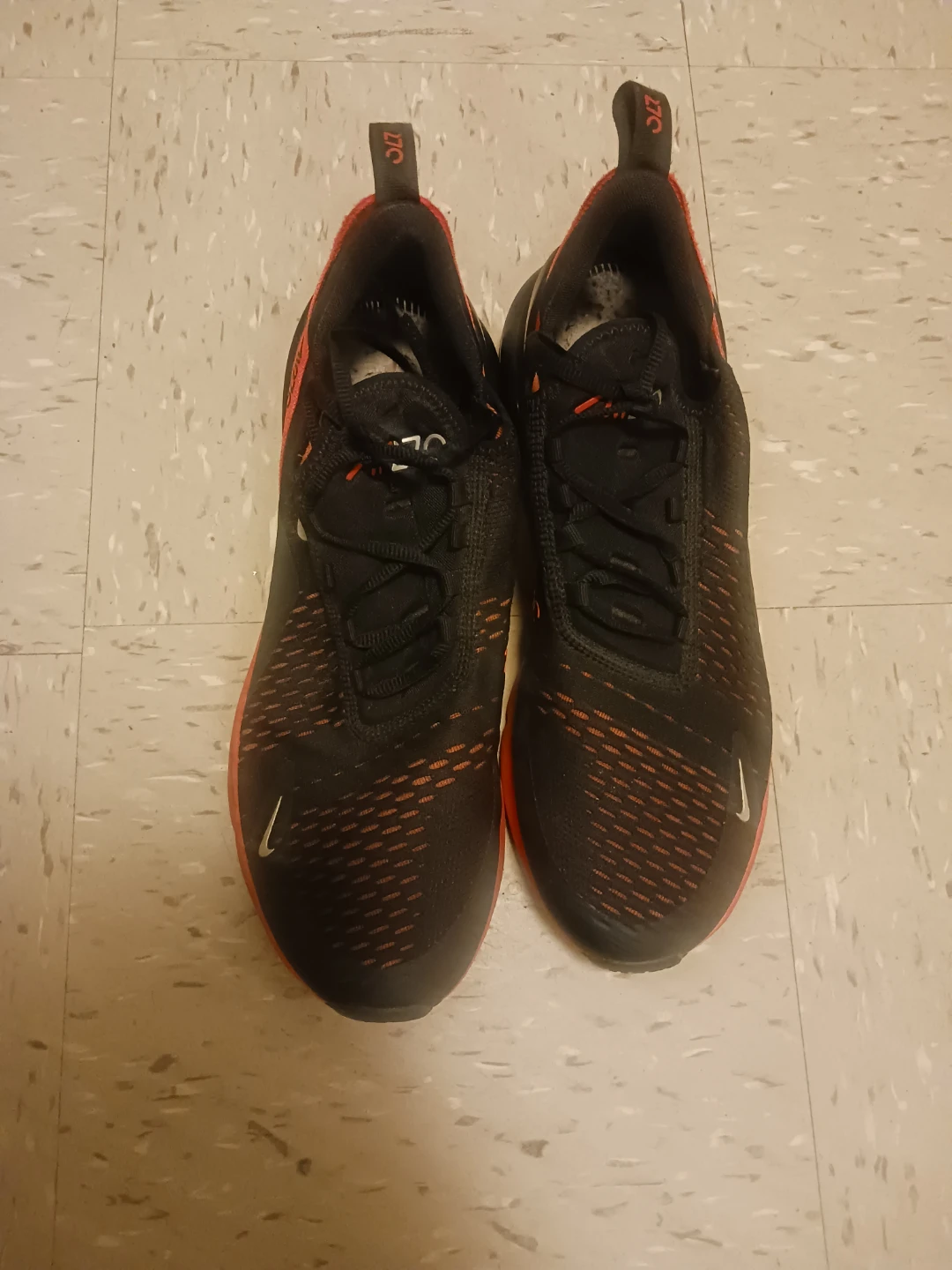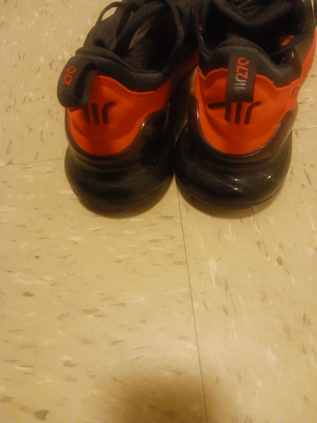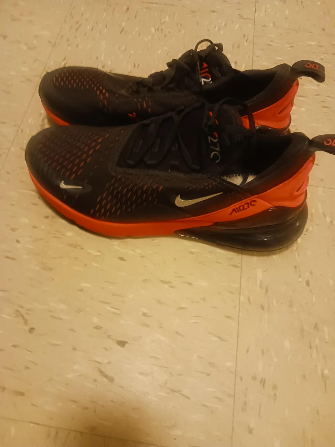 Selling a pair of Nike Air Max 270 great condition sneakers in black and orange. They're in good condition and ready for a new owner!