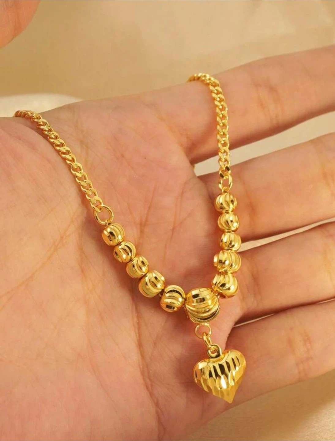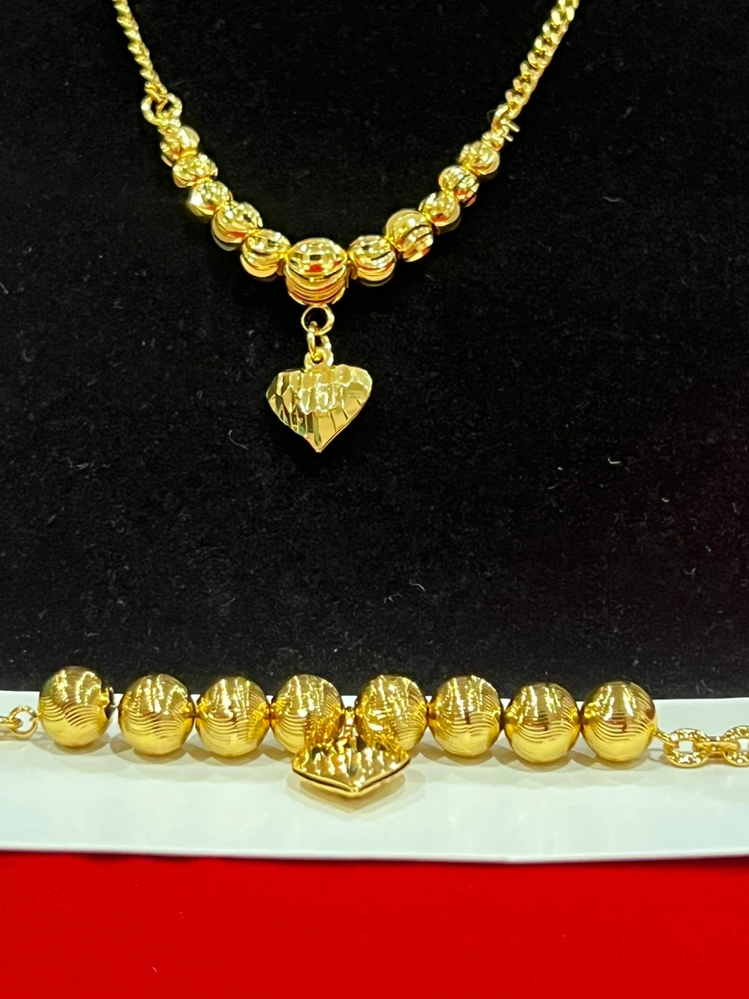 Beautiful gold-tone necklace and bracelet set featuring a heart pendant. Perfect for adding a touch of elegance to any outfit!
