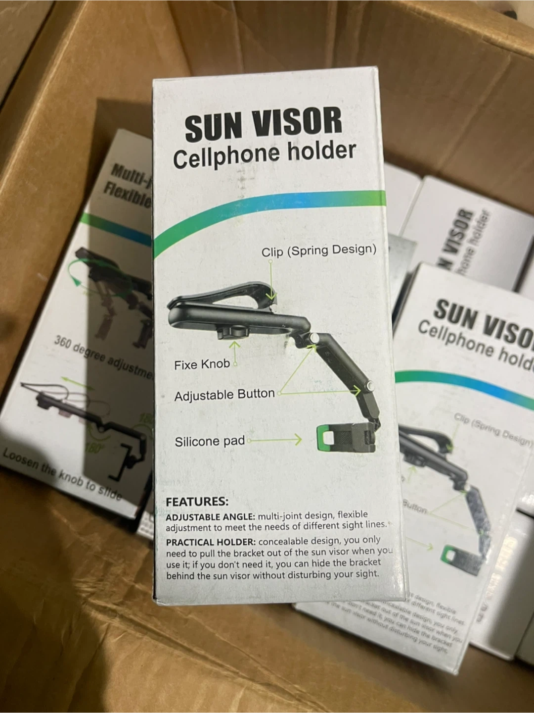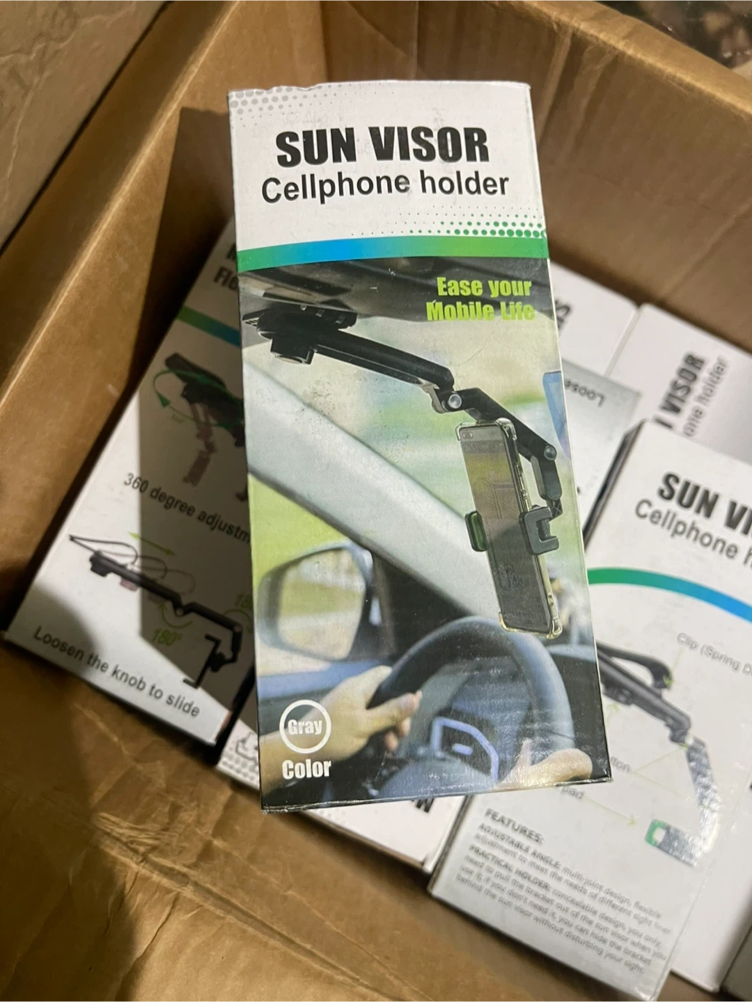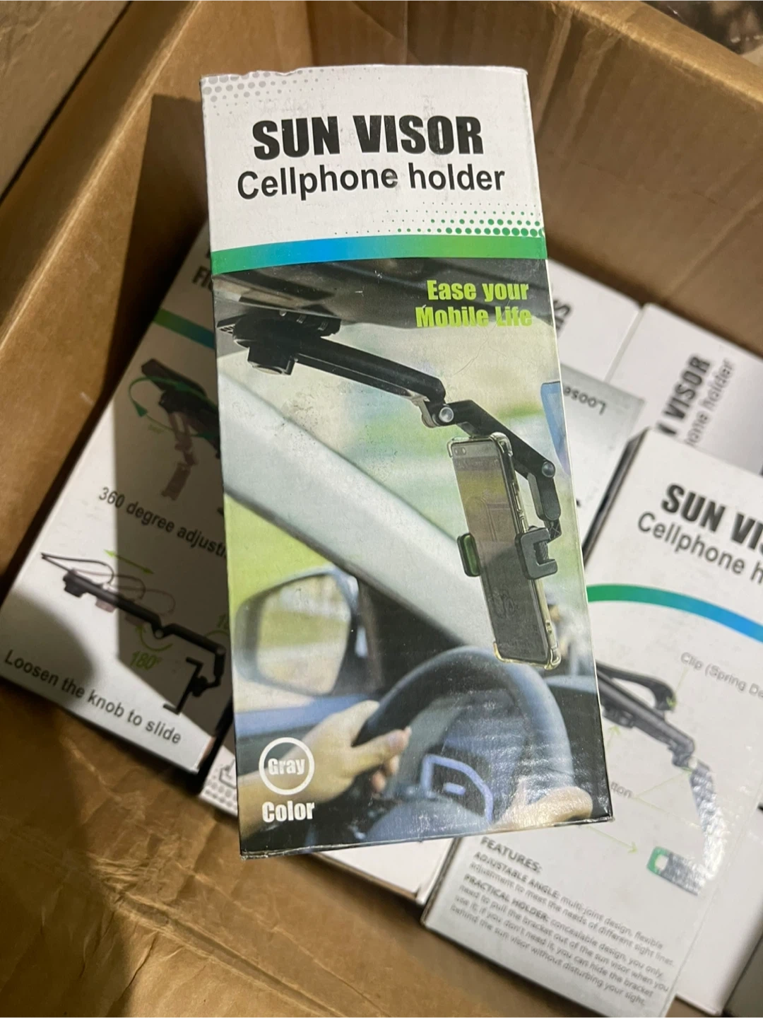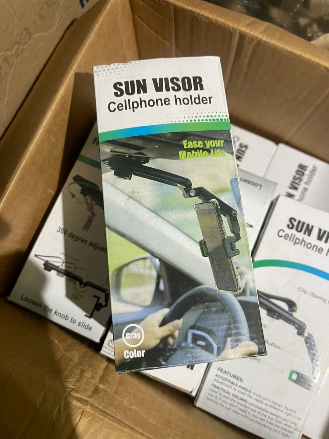 I'm selling a Sun Visor Cellphone Holder. It's designed to ease your mobile life and comes in gray.