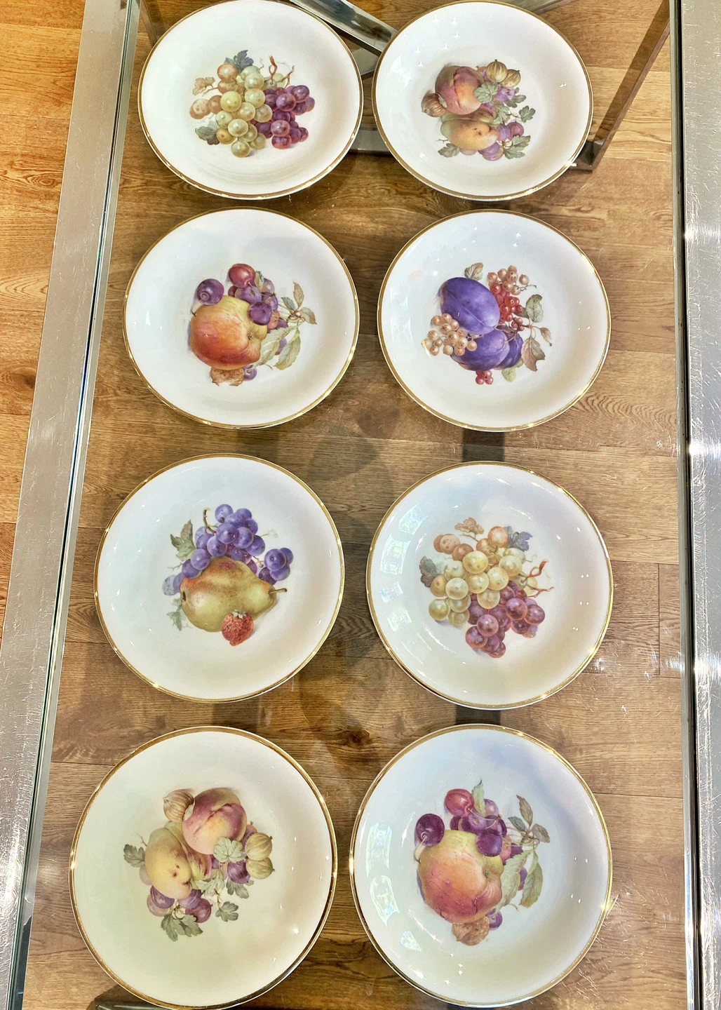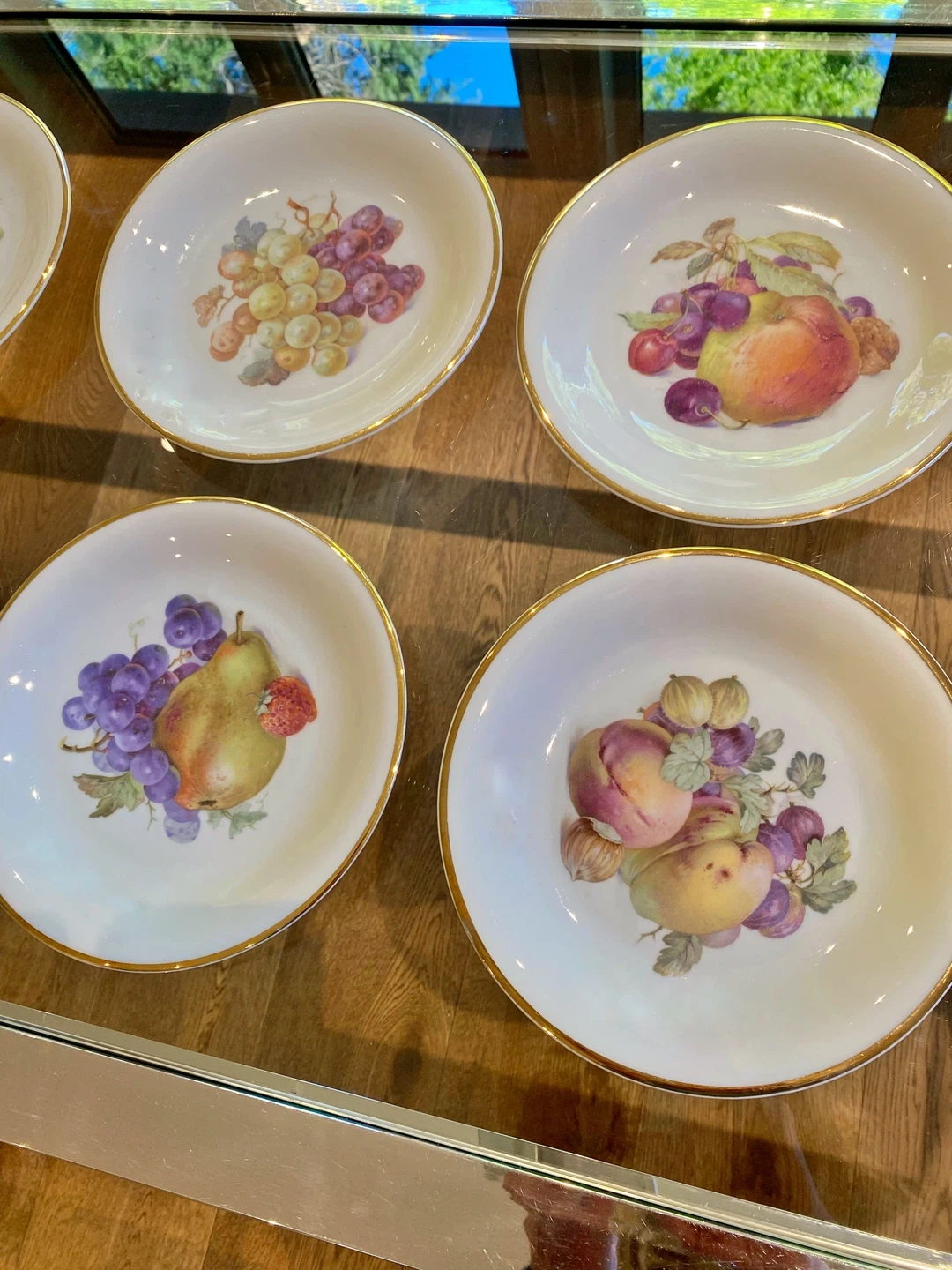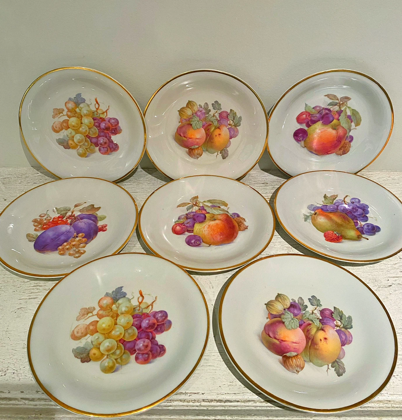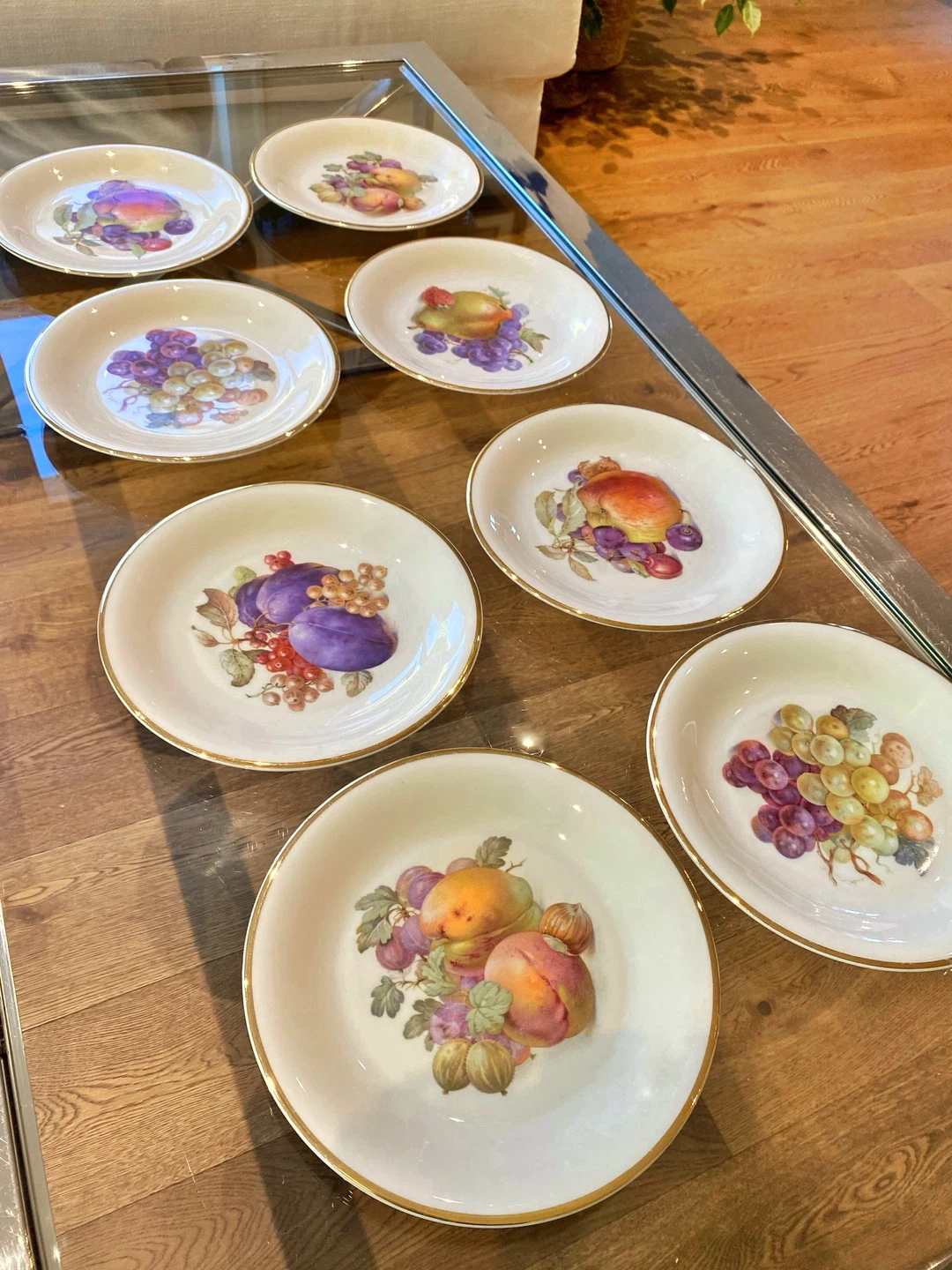 8 VINTAGE Schwarzenhammer Germany 7.5”Fruit Dessert Plates w/gold rim