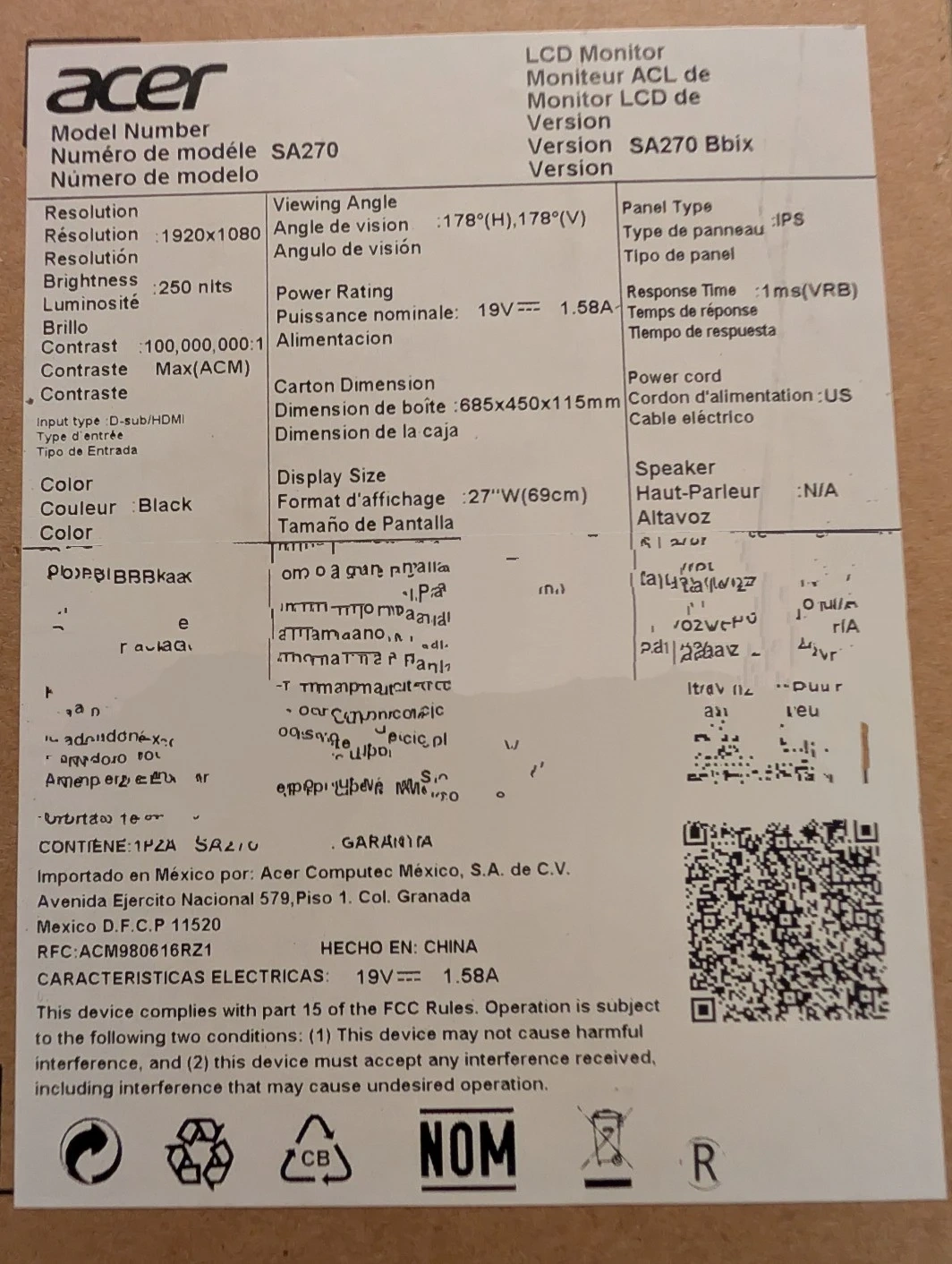 Acer SA270 27" FHD LED Monitor - Like New in Box!