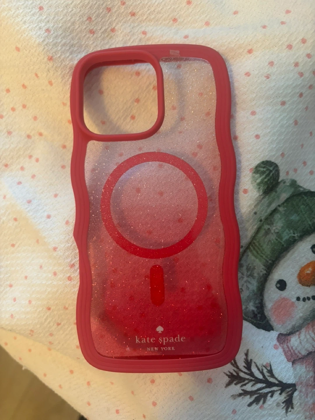 Selling a cute Kate Spade iPhone case! It's a pink colour with glitter and is compatible with MagSafe chargers