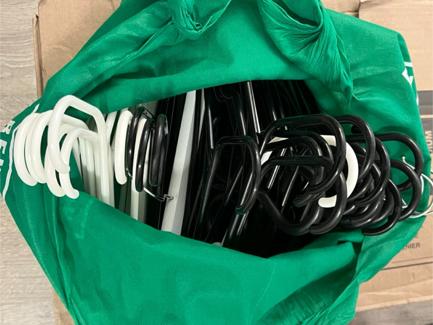 A bunch of clothes hangers in a mix of black and white colours. Perfect for organizing your closet!