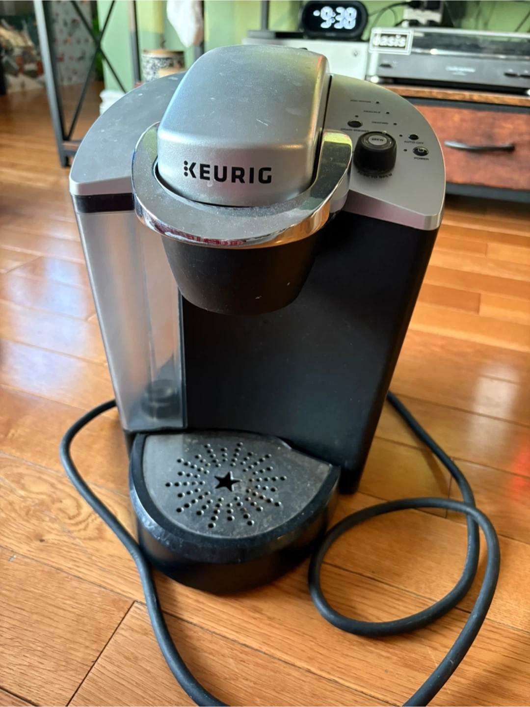 Getting rid of a Keurig single cup coffee maker. It's in okay condition. It’s an older machine and probably needs a good clean before use. However, it works perfectly fine! We don’t use it anymore (switched to french press), so we’re just trying to get rid of it.