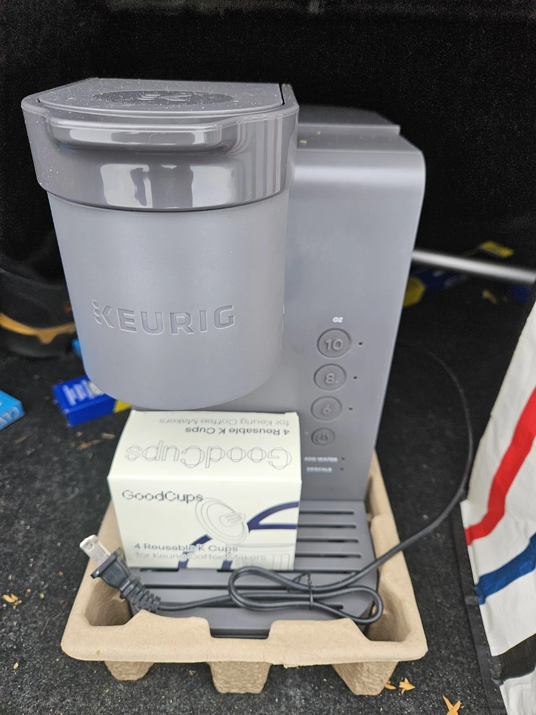 Selling a Keurig coffee maker. It comes with a box of GoodCups, which are reusable K-Cups for Keurig coffee makers ($15 value). Great for enjoying your favourite coffee blends.