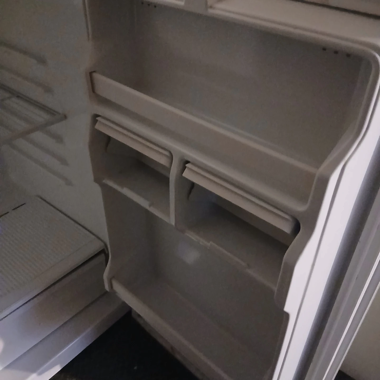 The interior is clean and ready to use. Perfect for a small apartment or as a second fridge.