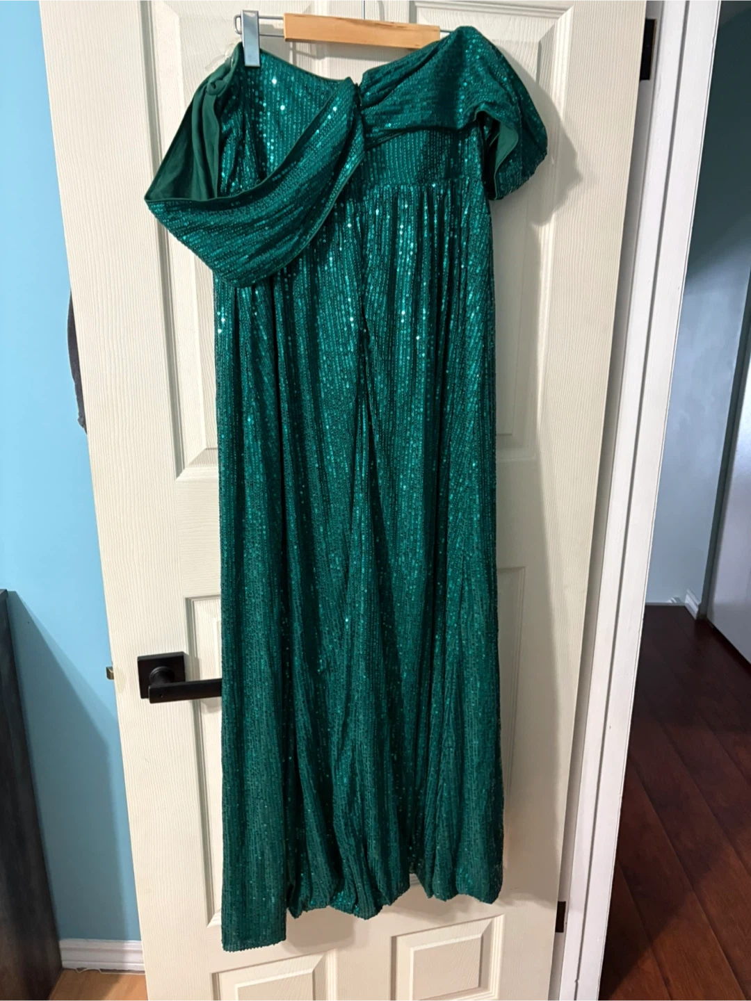 Selling a beautiful emerald green sequin maxi dress. It's perfect for a special occasion. The dress is in great condition and has a lovely shimmer.
