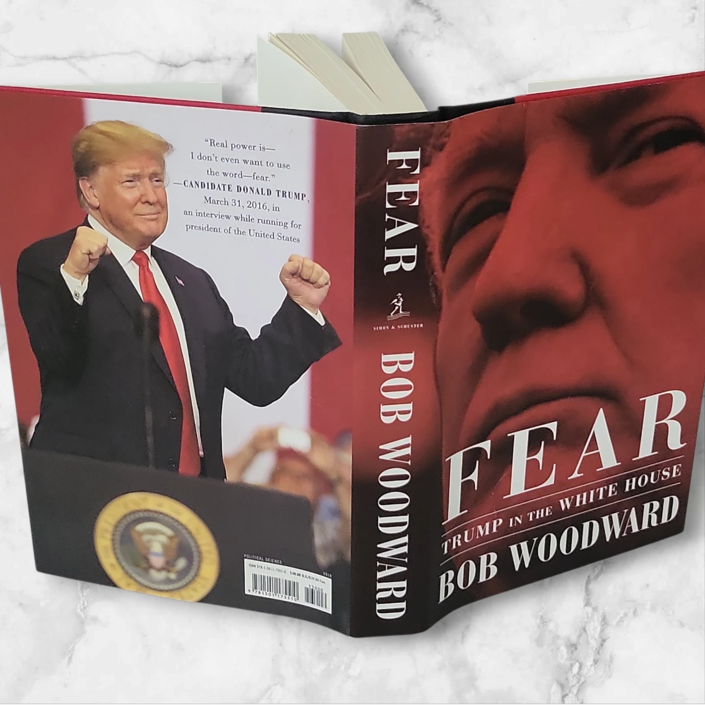 Selling a hardcover copy of "Fear: Trump in the White House" by Bob Woodward. It's a political science book that gives an inside look at the Trump administration.
