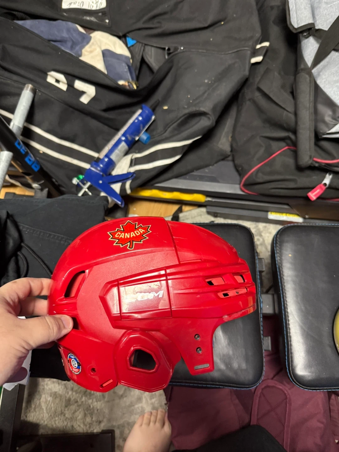Buy & SellCCM Canada Hockey Helmet - Size largeCCM Canada Hockey Helmet - Size large$70Selling a CCM hockey helmet in red with Canada maple leaf design. It features the number 99 on the back and front . Size is largerWHERE TO MEETHomeView MapSELLERverifiedPhilipMount Dennis682 reviews0 chats·0 favorites·10 viewsSEND CHAT TO SELLERHi Philip! I’m interested in your listing.Hi Philip! I’m interested in your listing.Get the Karrot app to chatSign In to chat