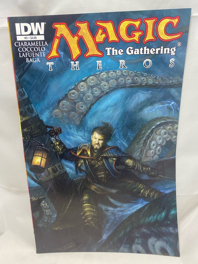 Dive into the world of Magic: The Gathering with issue #3 of the Theros mini-series, featuring the vibrant Ravnica Baga Variant A cover. Published by IDW in 2014, this comic book brings the mysticalPlane of Ravnica to life through the inventive art of Vance Steveson, capturing the essence of the beloved MTG universe. Without a card included, this issue stands out for fans of Dack Fayden and the strategic magic of the MTG universe. It's a must-have for enthusiasts looking to complete their collection or just appreciate the rich storytelling and artwork that has become a hallmark of the Magic: The Gathering comic series.