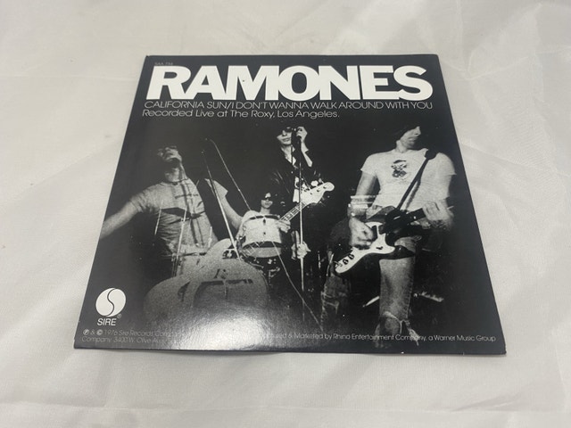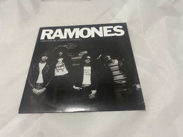 For sale is a Ramones "I Wanna Be Your Boyfriend" 45 record from 1976, complete with its original picture sleeve. This vintage record is in used condition, showing some signs of its age, which adds to its unique charm. A must-have for any Ramones fan or vinyl collector! If the ad is up, it's available!