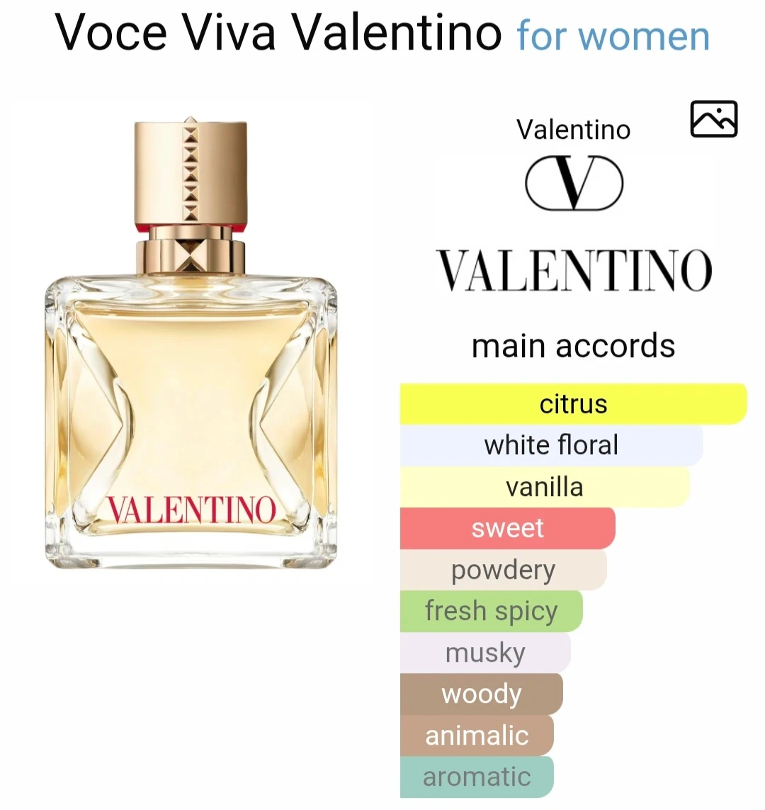 Selling a bottle of Valentino Voce Viva Eau de Parfum Intense. This fragrance has main accords of citrus, white floral, and vanilla, with sweet, powdery, and fresh spicy notes as well. It also has musky, woody, animalic, and aromatic hints to it.