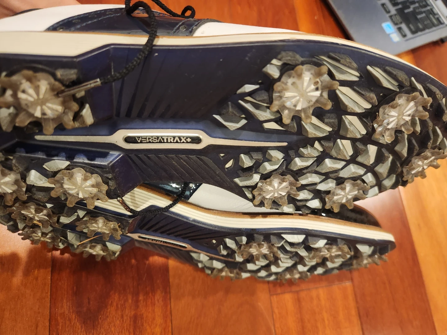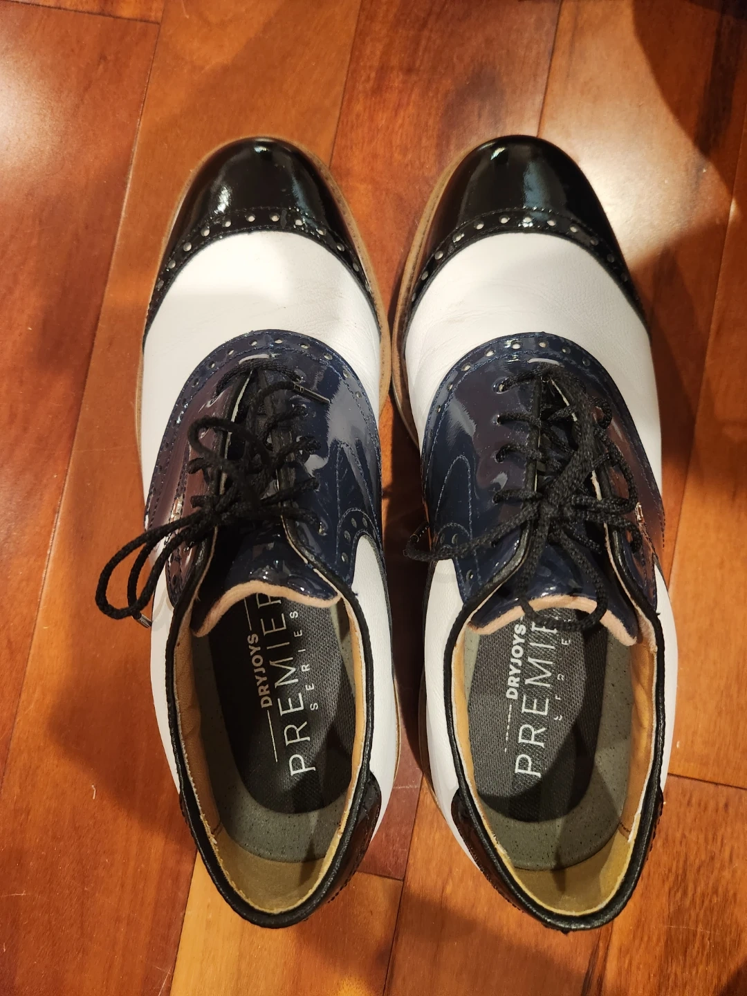 Selling a pair of FootJoy Premier Series golf shoes in size 8.5M. They feature VersaTrax+ technology on the soles for great grip. These shoes are perfect for the golf course!