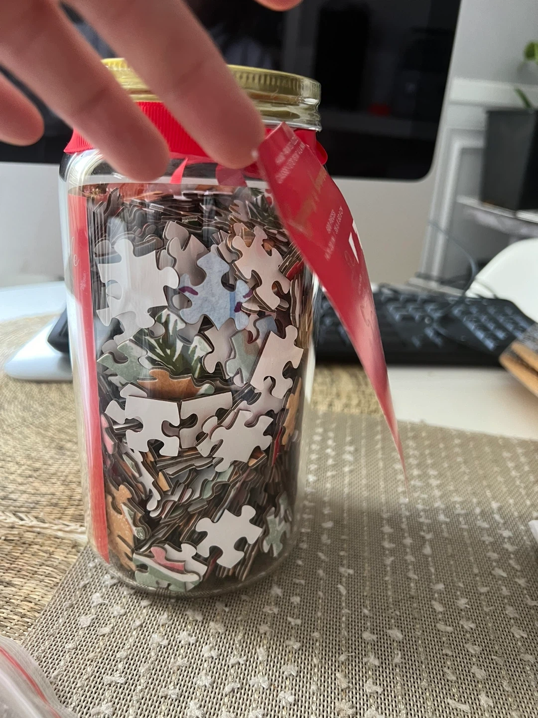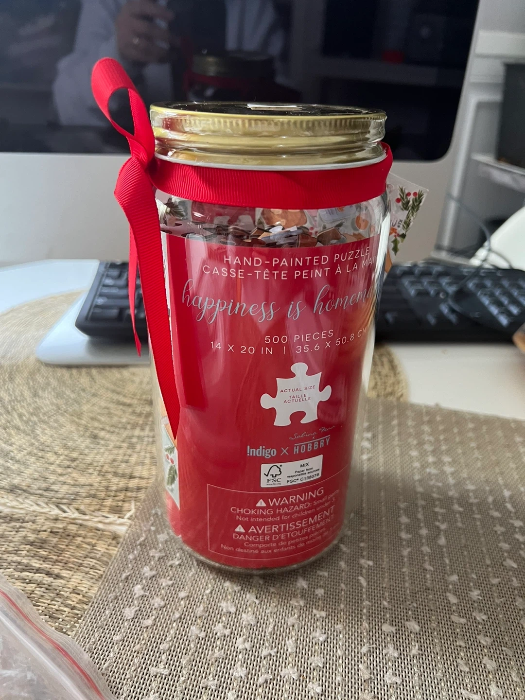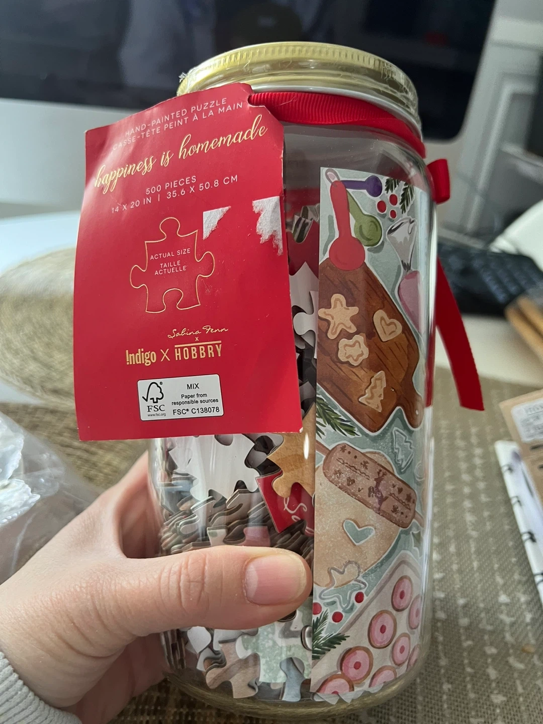 I'm selling a brand new, still-in-jar Indigo x Hobby hand-painted puzzle! It comes with 500 pieces and the assembled puzzle is 14 x 20 in / 35.6 x 50.8 cm. Happiness is homemade!