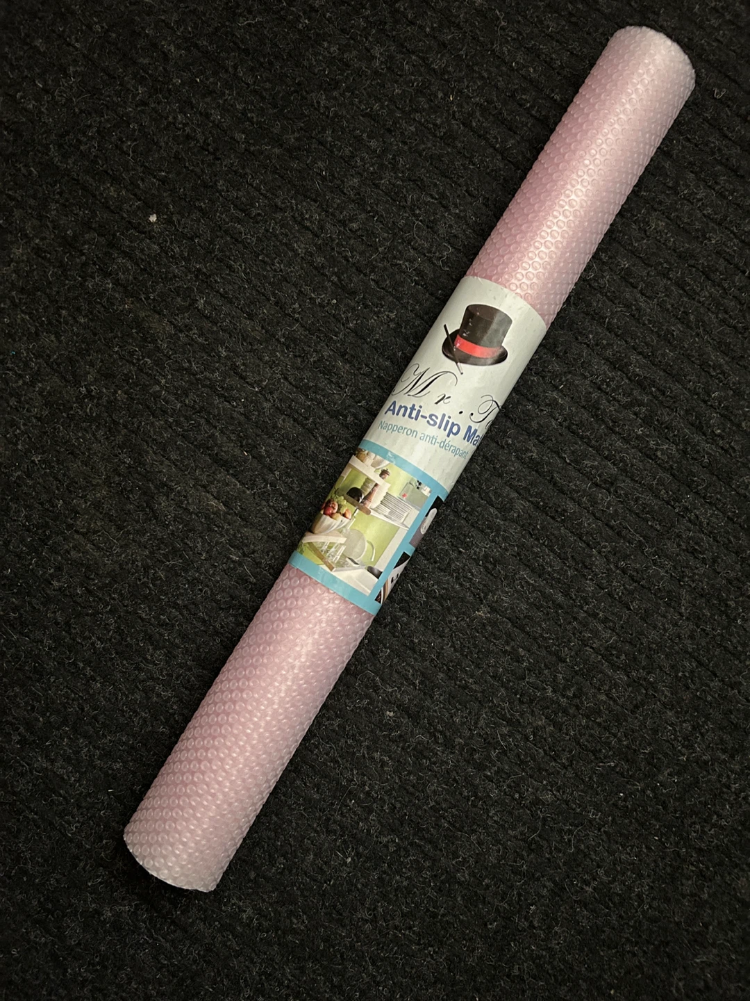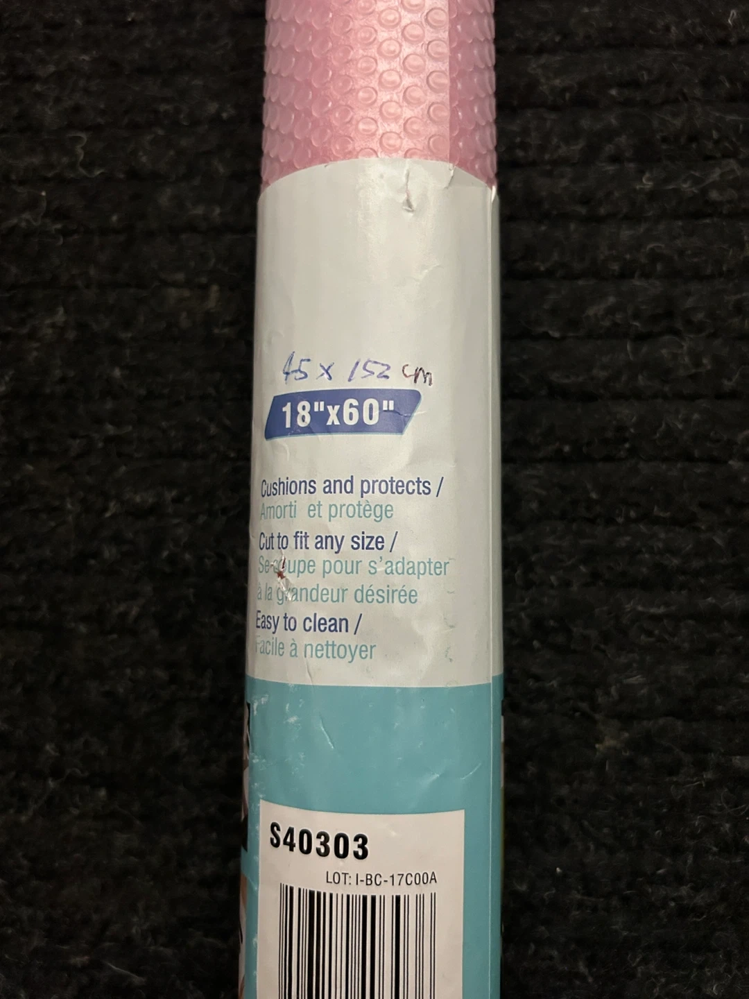 Brand new Anti-Slip Mat. It cushions and protects, and it's easy to clean. It's also designed to be cut to fit any size you need. The size is 45 x 152 cm, which is 18" x 60".