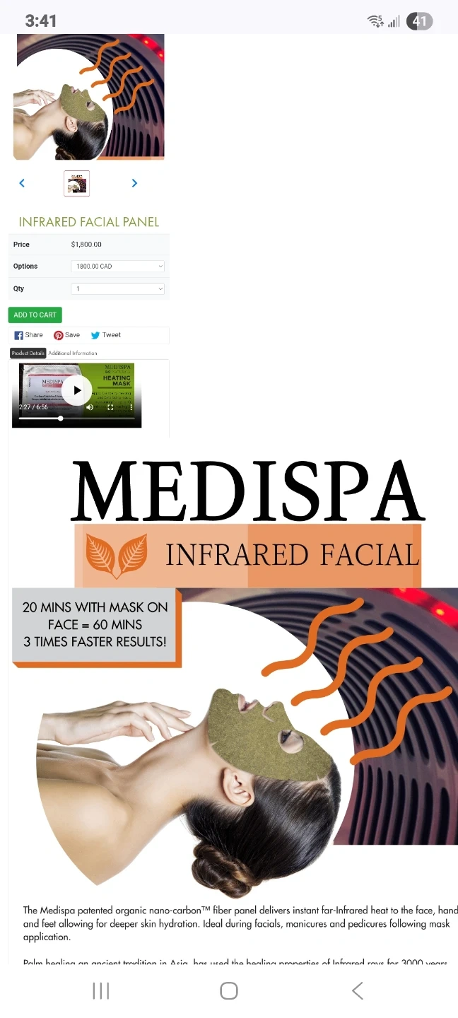 - Medispa Infrared Facial Panel: This fiber panel delivers instant infrared heat for face, hands, and feet, allowing for deeper skin hydration. Originally listed for $1800 CAD.
