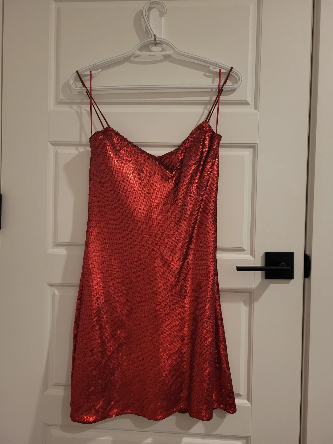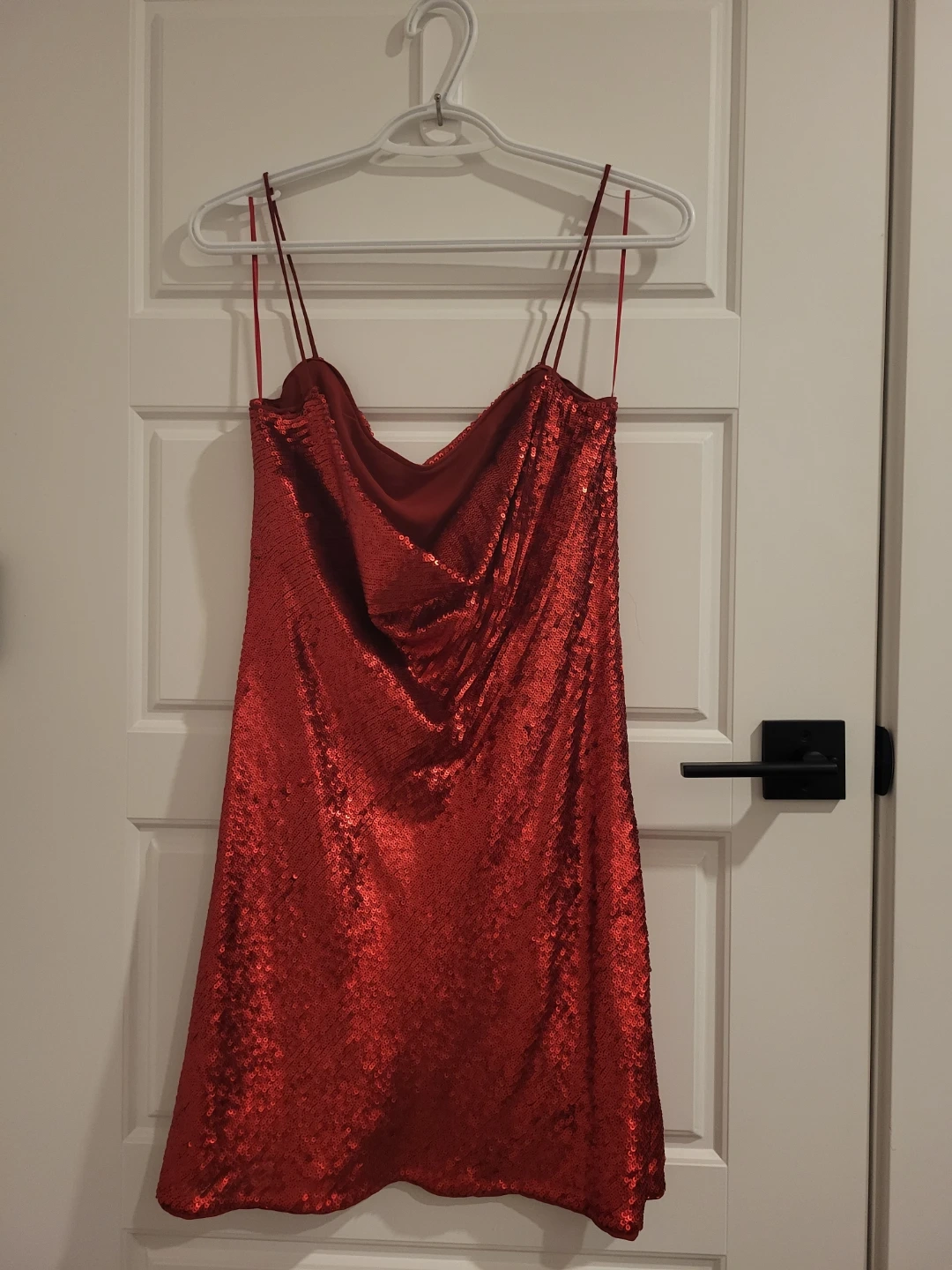 Selling a Zara red sequin mini dress in size S. It's a real eye-catcher and perfect for a night out or a special occasion! The dress is in great condition (only worn once).