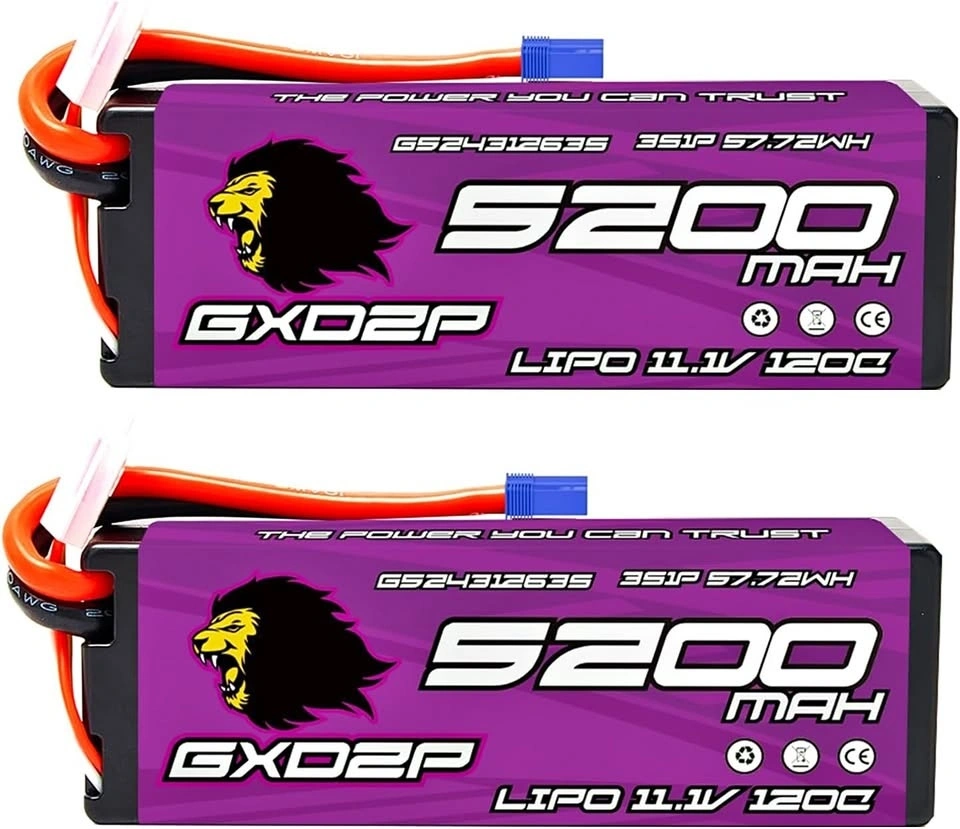 GXDZP 2 Packs 3s Lipo Battery 5200mah 120c EC5 - New