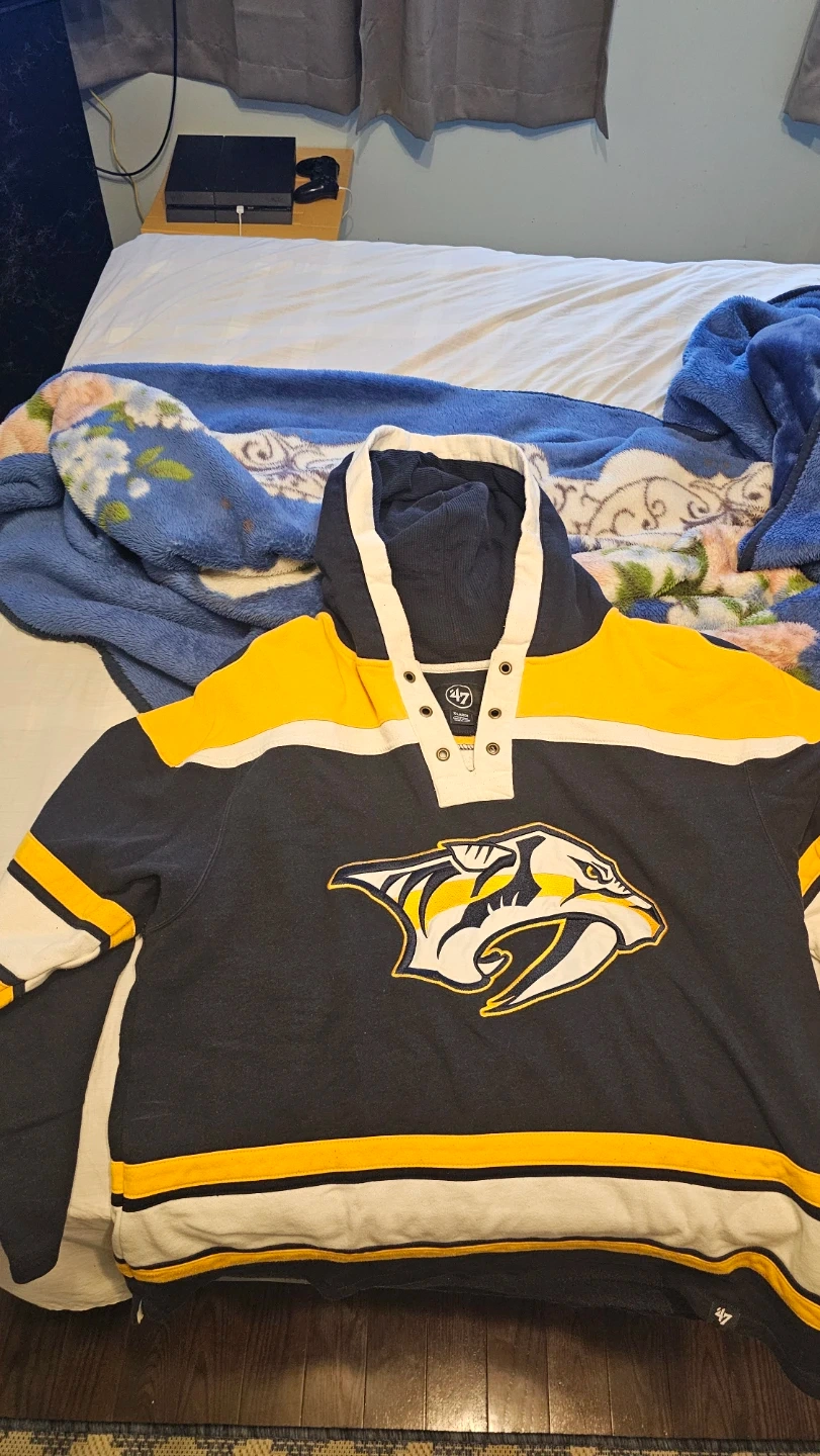 Buy & SellNashville Predators '47 Brand HoodieNashville Predators '47 Brand Hoodie$25Selling a '47 Brand Nashville Predators hoodie. It's black and yellow with the Predators logo on the front. A cozy way to show your team spirit!ConditionGoodSizeXL Brand47 BrandWHERE TO MEETMcCowan and SteelesView MapSELLERverifiedNiranMarkham E620 reviews1 chats·0 favorites·9 viewsSEND CHAT TO SELLERHi Niran! I’m interested in your listing.Hi Niran! I’m interested in your listing.Get the Karrot app to chatSign In to chat