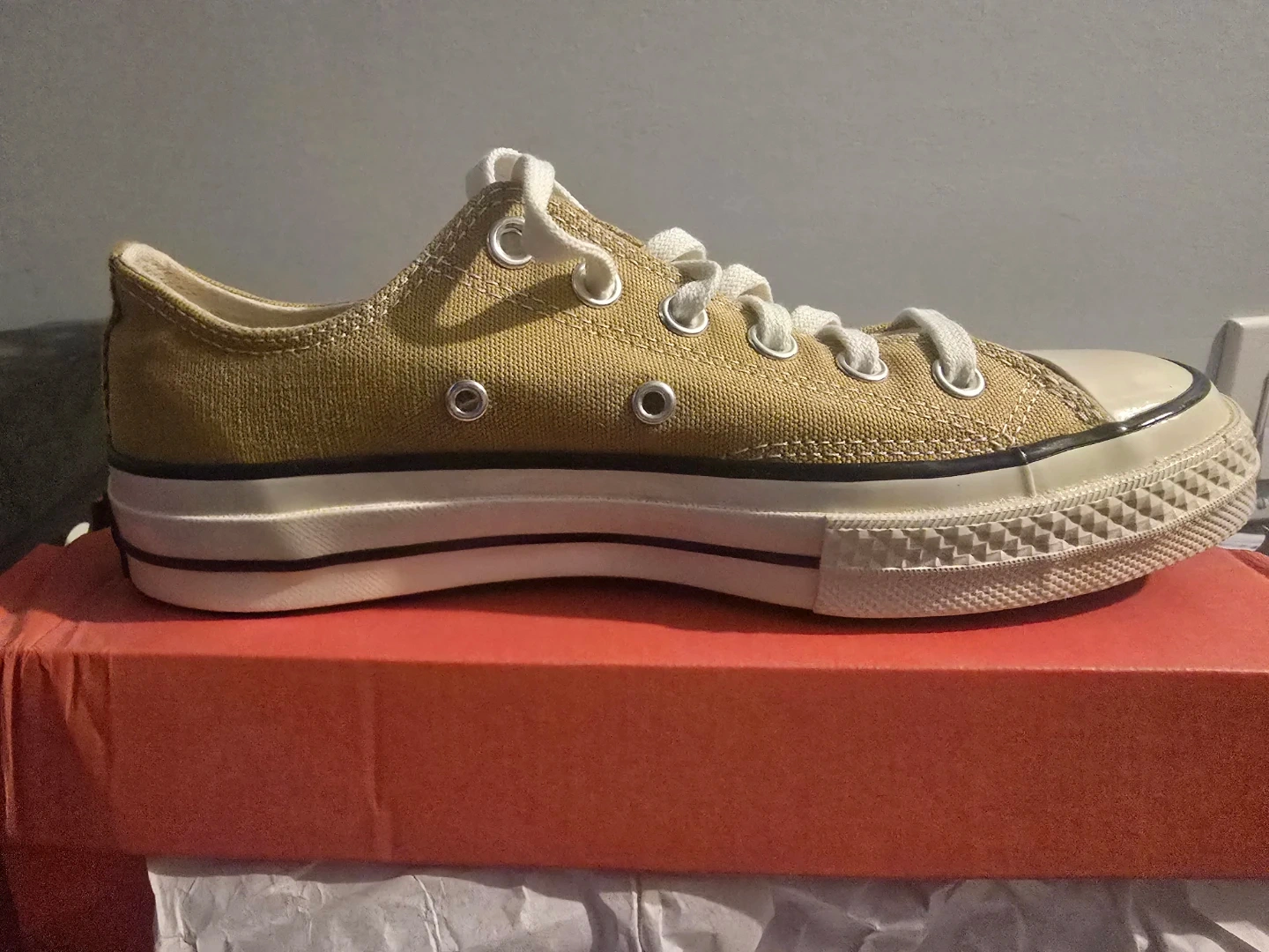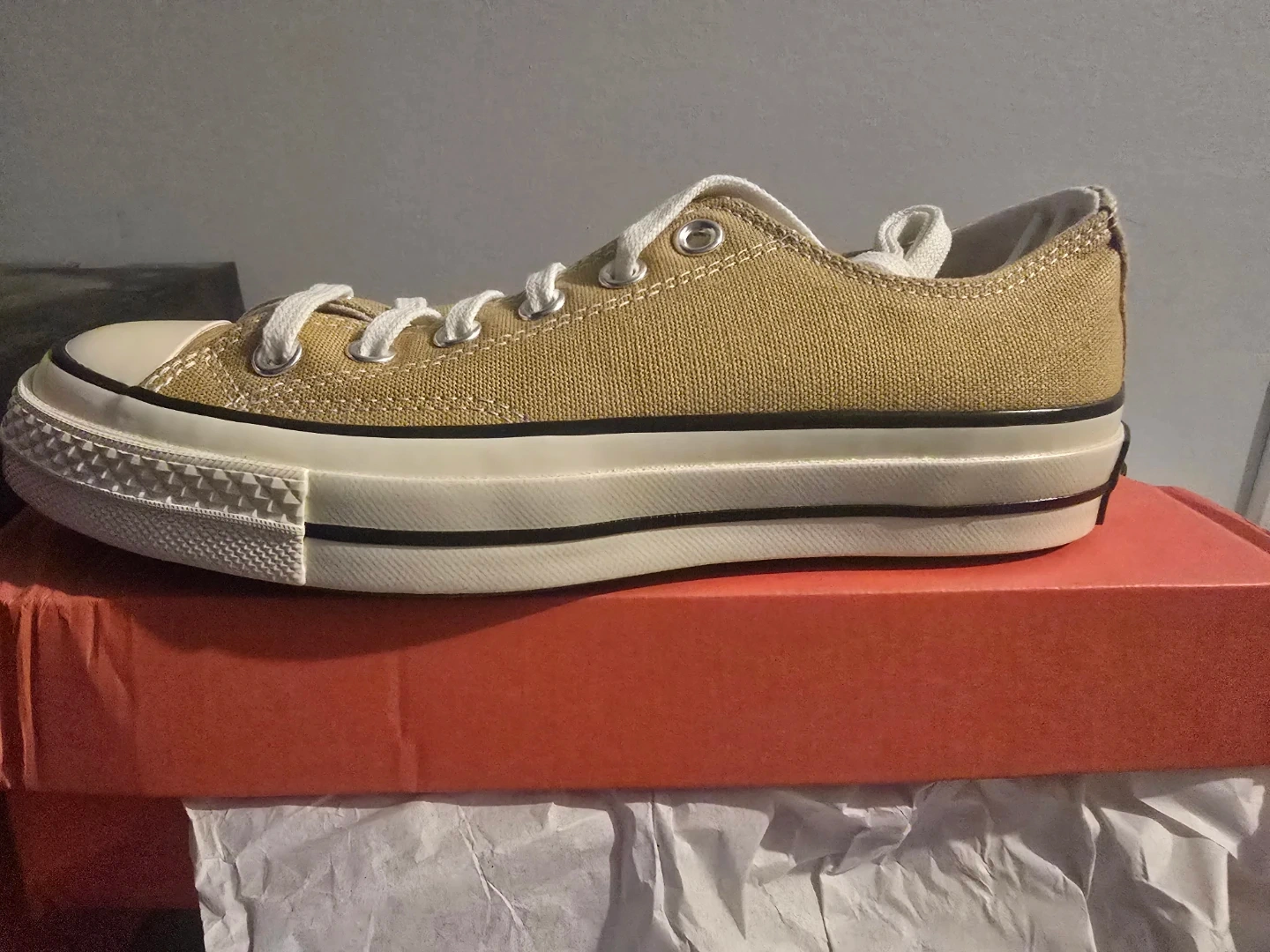 These are a pair of Converse Chuck Taylor All Star Lift sneakers in a neutral color. They come with the original box. Womens size 7, brand new with box.