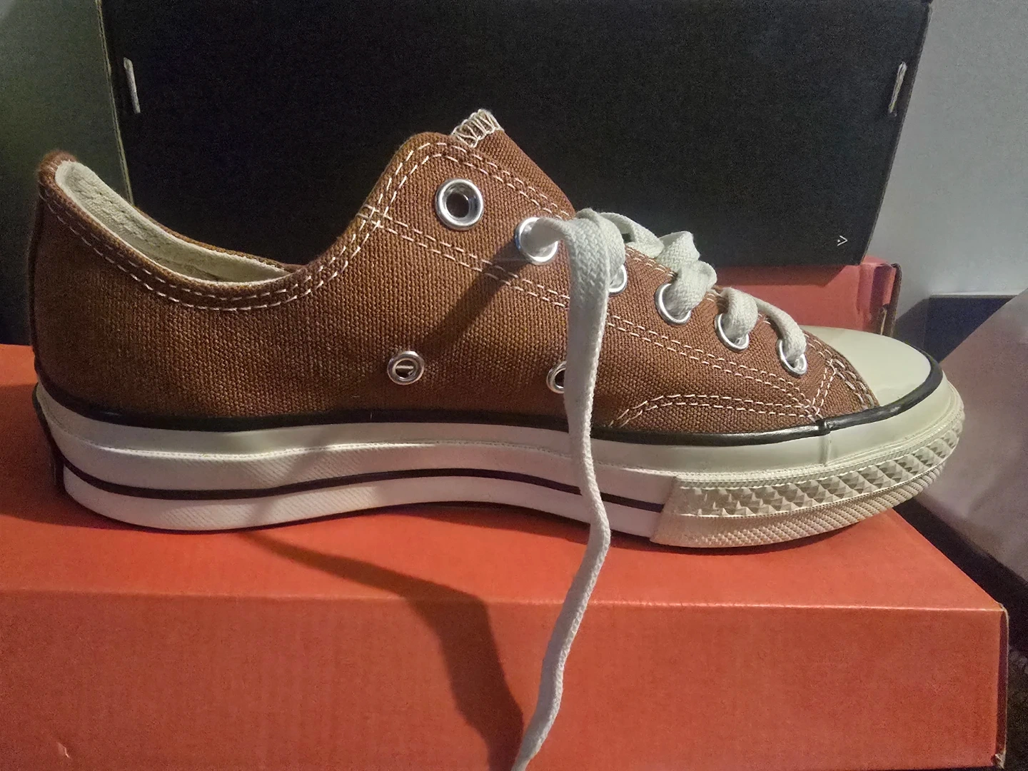 Selling a pair of Converse Chuck 70 Low Top sneakers! They are a size Womens 7 and come in a nice brown color. The box is included!