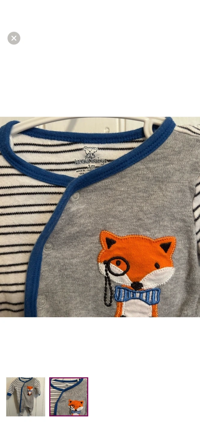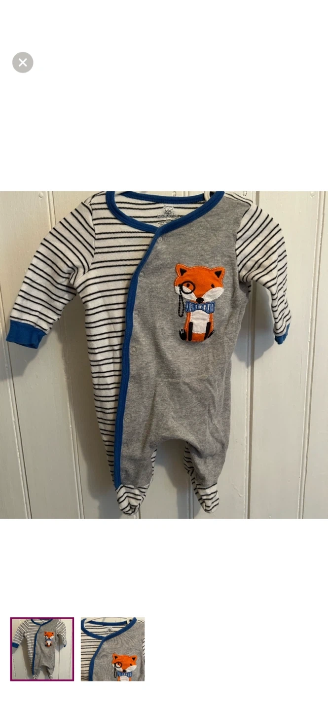 Koala kids brand. Button up sleeper. One side blue striped one side grey with orange fox. Size 3m. Brand new condition