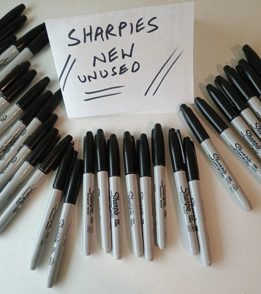 I have many unused Sharpie fine point black permanent markers. Perfect for all your writing and drawing needs!