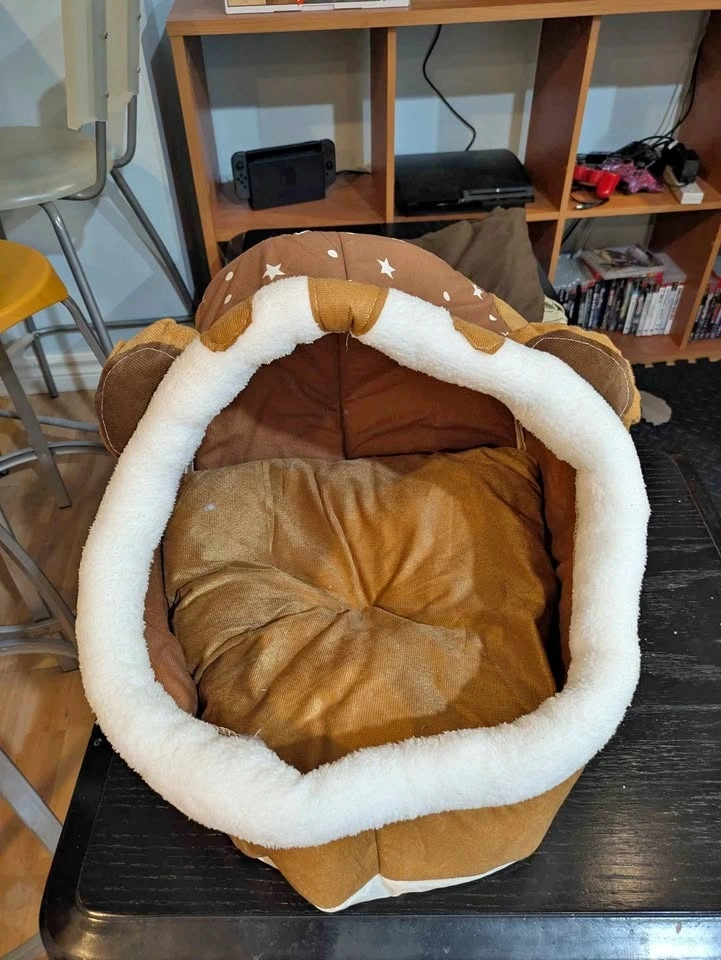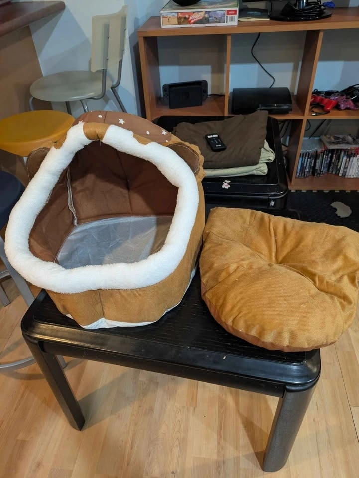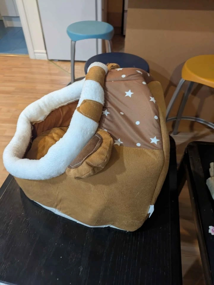 I bought this bed for my toy poodle, but it was too small. It is brand new and has never been used.
