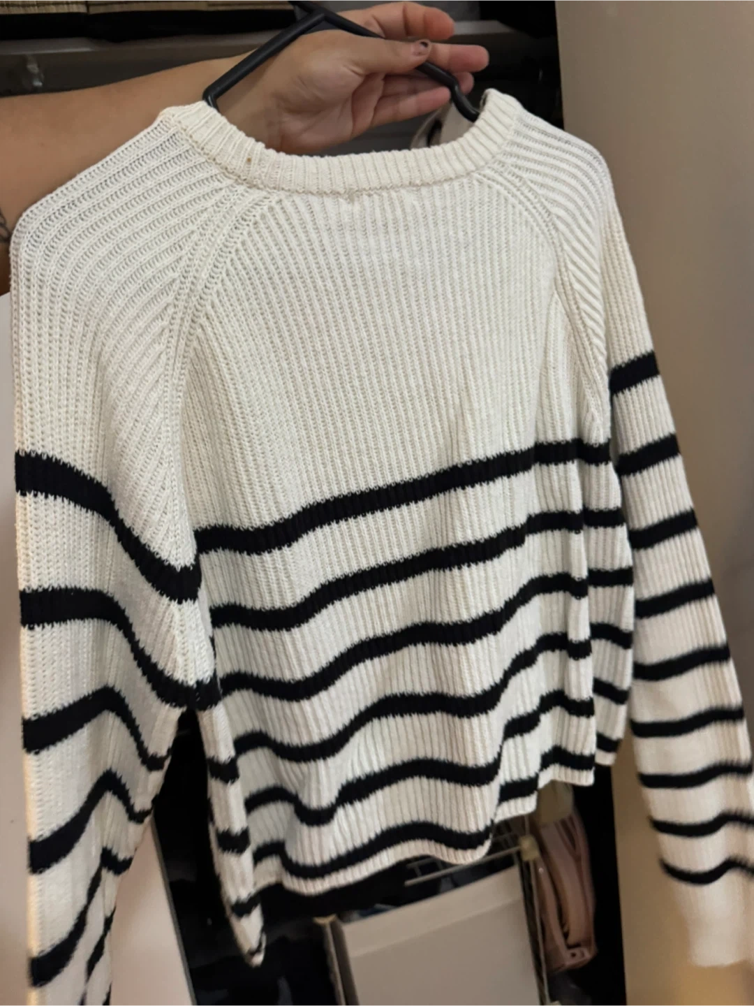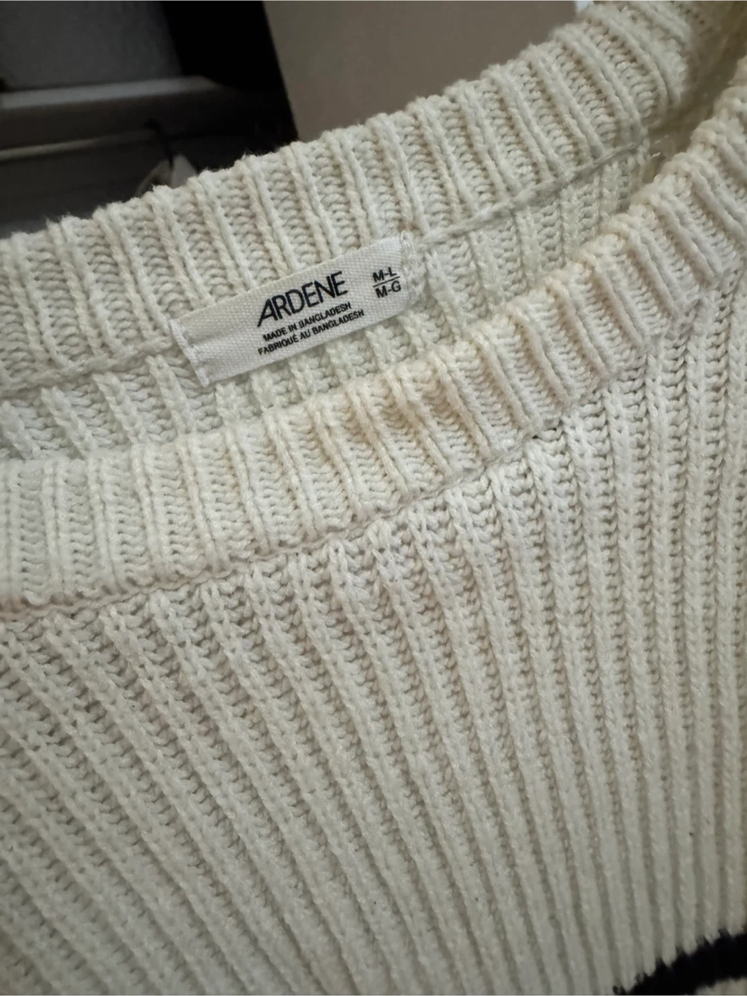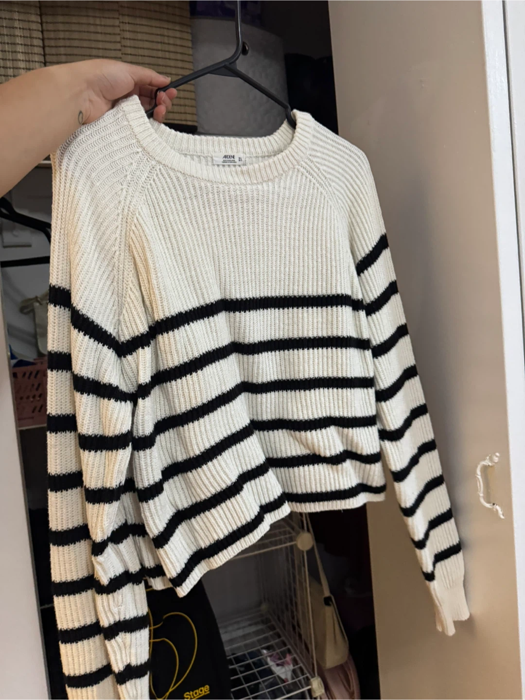Cozy Ardene sweater with a classic striped design. It's a size M/L and in great condition! Perfect for layering or wearing on its own during cooler days