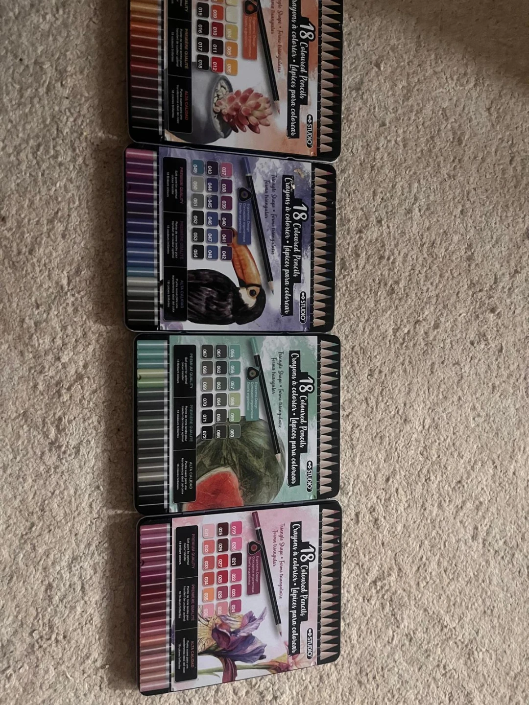 Selling a set of Studio 18 Coloured Pencils! These are brand new and ready for your next art project. They feature a triangle shape for comfortable use and come in a variety of brilliant colours