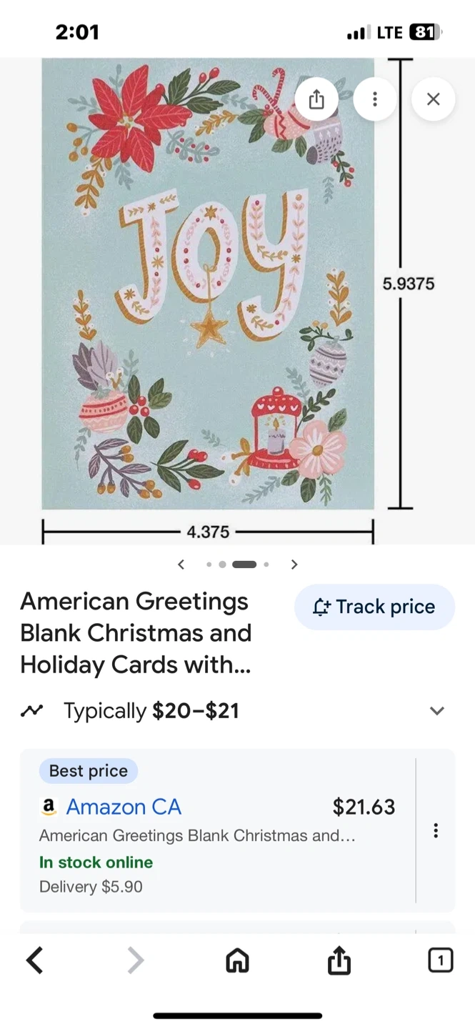 Selling a set of new American Greetings blank Christmas and holiday cards! The cards feature a festive design with the word "Joy" and decorative elements. They measure approximately 4.375 x 5.9375 inches. Originally bought for $21.63