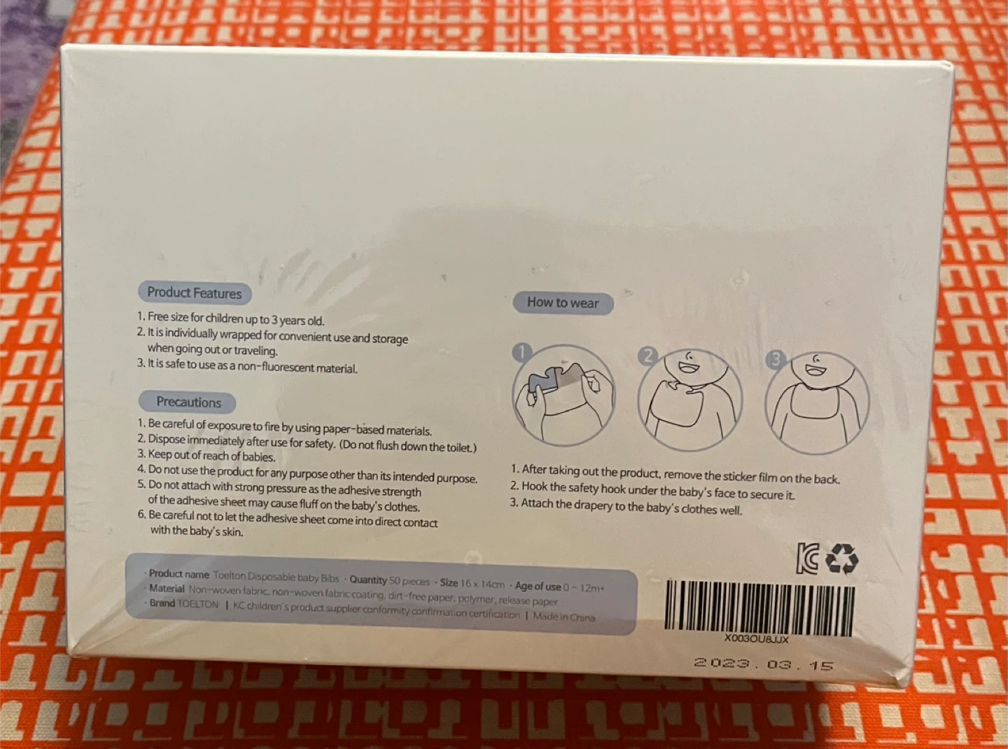 Toelton Disposable Baby Bibs, 50 pcs, New