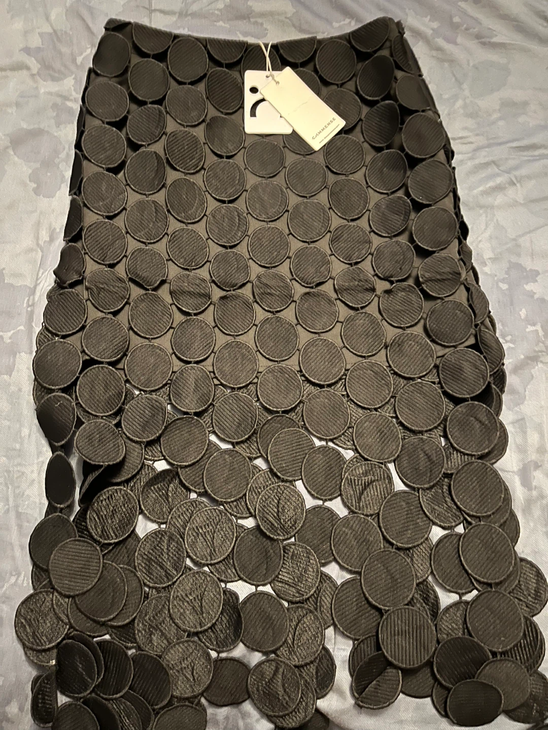This is a Commense Laser Cut Multi Circle Double Layered Skirt. It's black and a size Medium. Brand new with tags. Originally bought for $72.63 CAD.