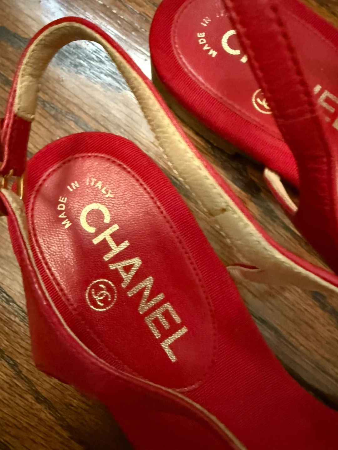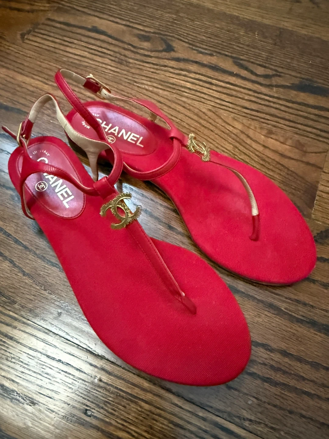 Selling a pair of Chanel red sandals. They are size 38.5