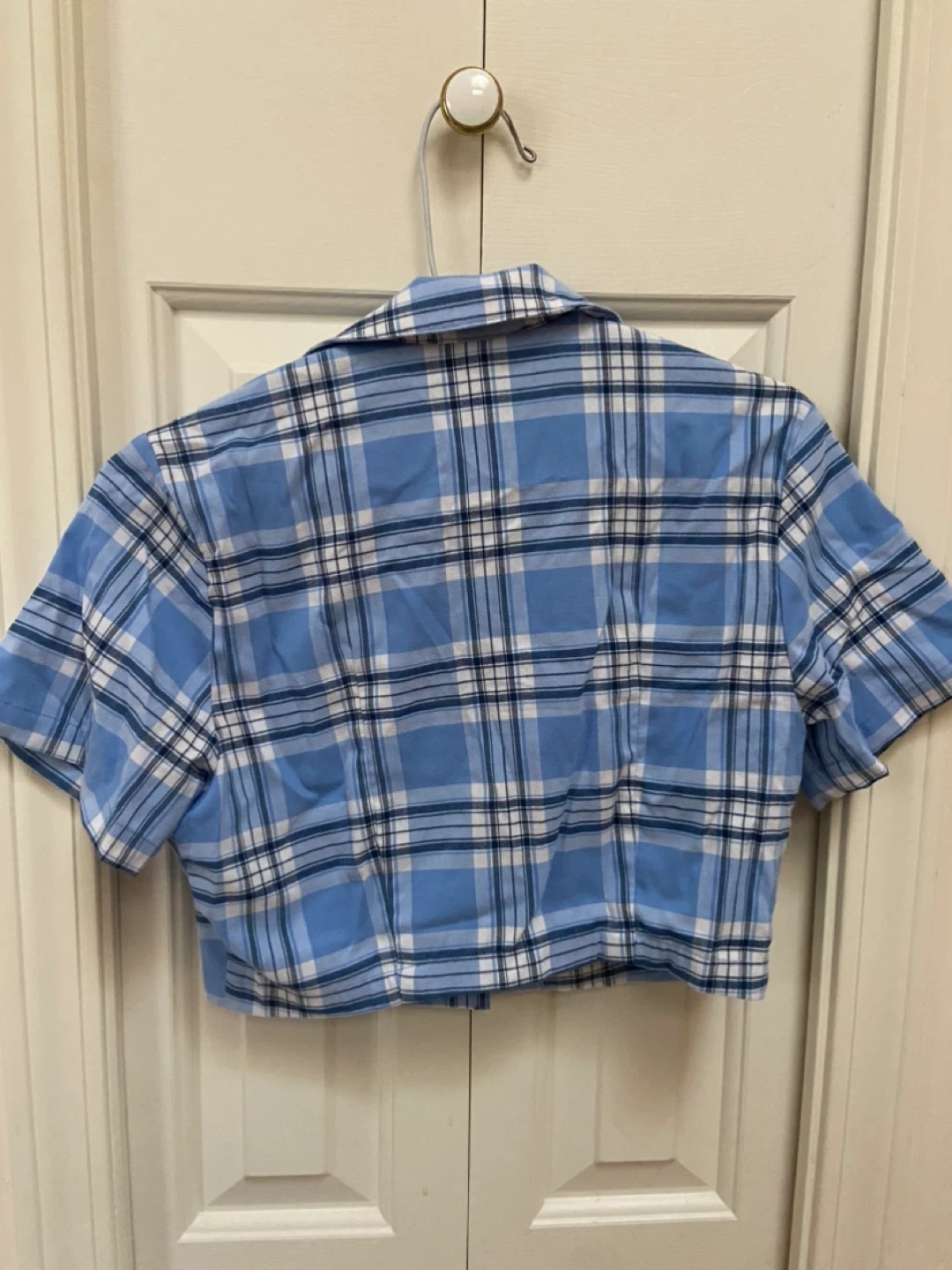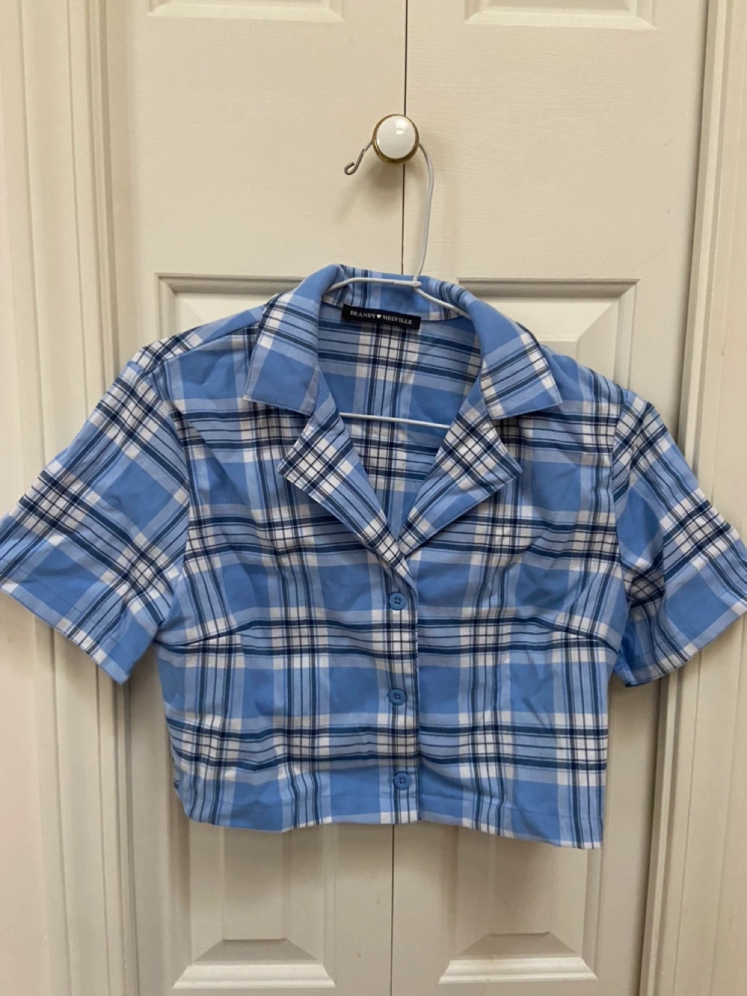 Selling a cute Brandy Melville crop top in a blue plaid pattern! It's in great condition and perfect for summer. It's a one size fits all, so it's super comfy and easy to wear. Let me know if you're interested!