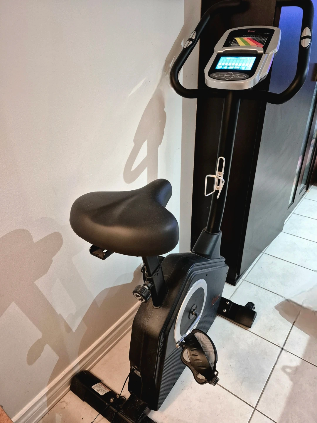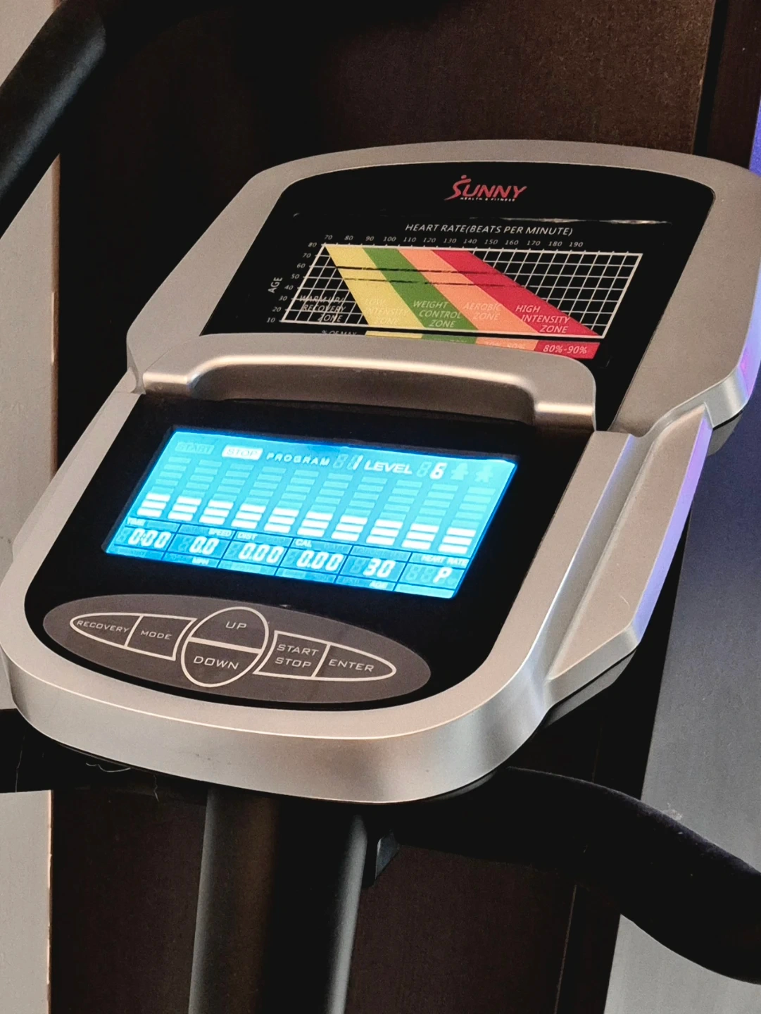 PERFORMANCE MONITOR: Track your speed, RPM, time, distance, calories burned, wattage, heart rate, and workout programs on one backlit screen when you plug in the upright cycle bike.