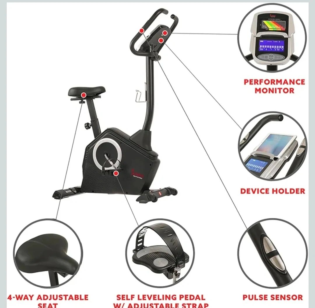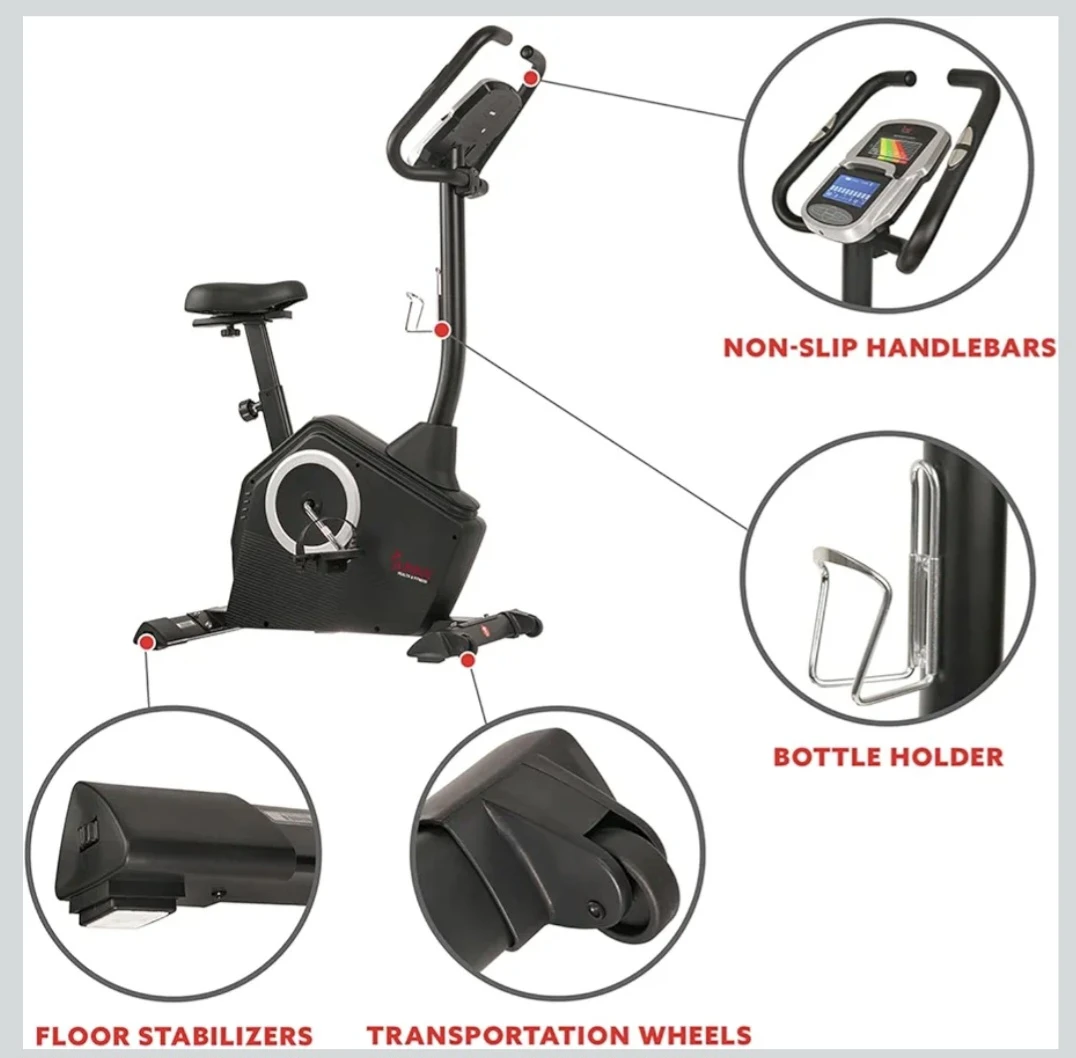 Get your sweat on with this Sunny Health & Fitness exercise bike! It features: