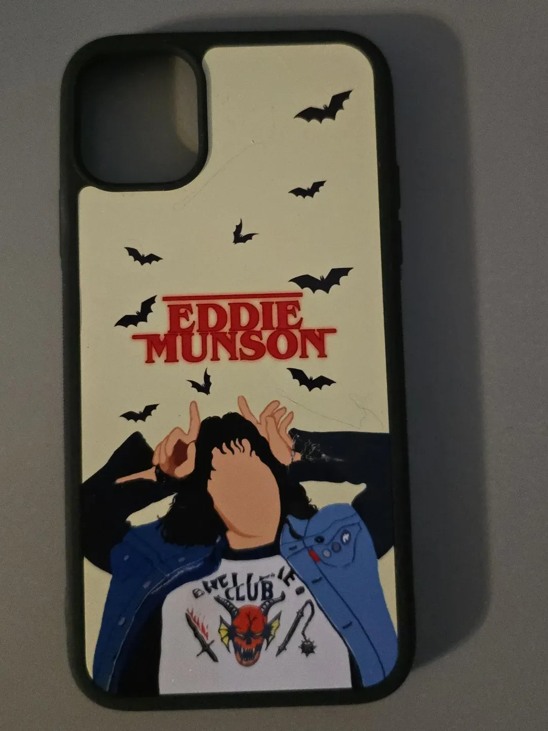 Selling a fun iPhone 11 case featuring Eddie Munson from Stranger Things! It has a cool design with bats and the Hellfire Club logo. Perfect for any fan of the show! New one