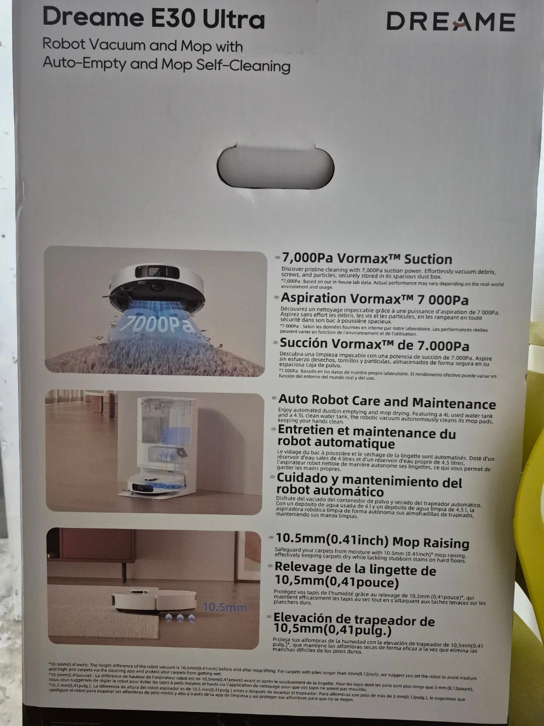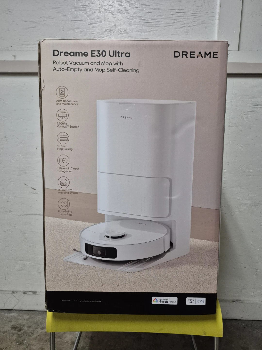 Selling a brand new Dreame E30 Ultra Robot Vacuum and Mop with Auto-Empty and Self-Cleaning! It boasts 7000Pa VorMax Suction and Auto Robot Care and Maintenance. It also features 10.5mm (0.41inch) Mop Raising.