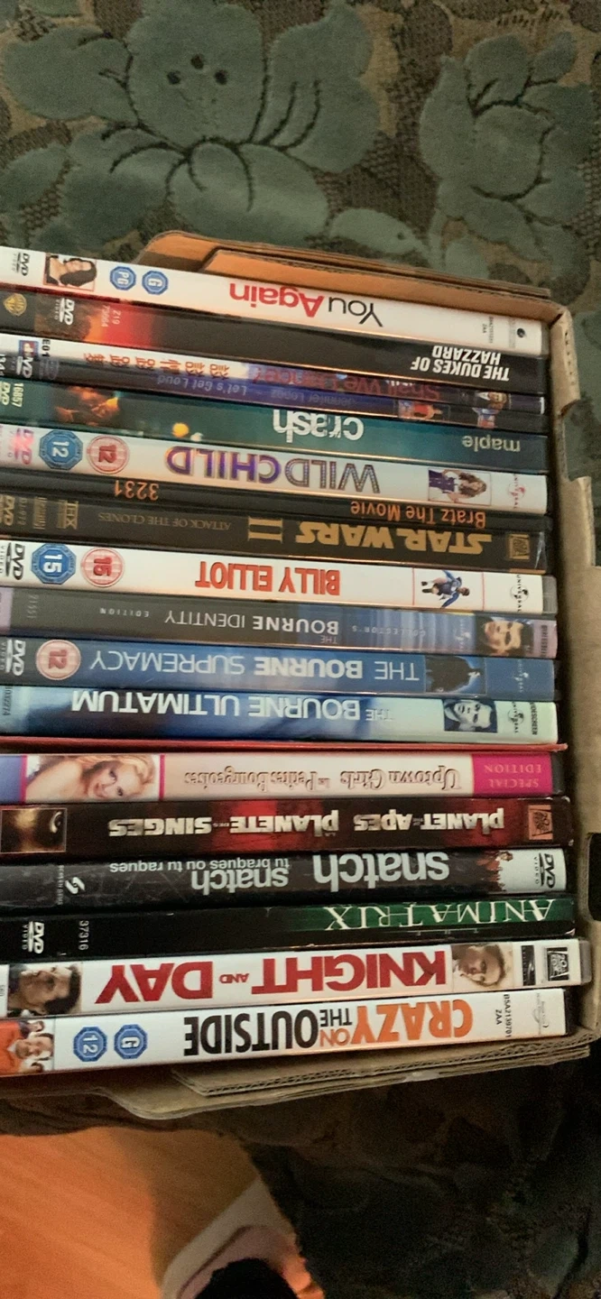 Selling a collection of DVDs, including titles like Crazy on the Outside, Knight and Day, The Animatrix, and Snatch. There are also some Planet of the Apes and Bourne movies in the mix! A great selection for movie nights